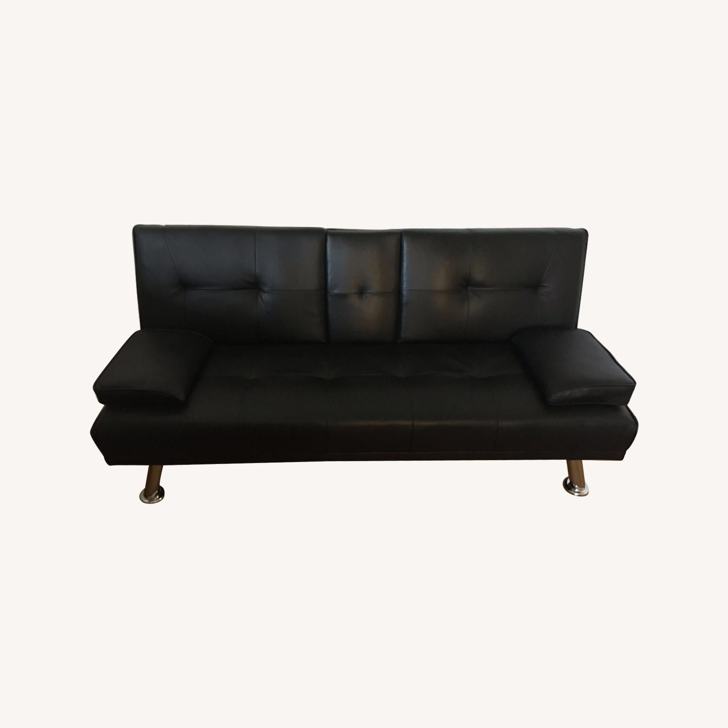 Black Faux Leather Convertible Futon Couch