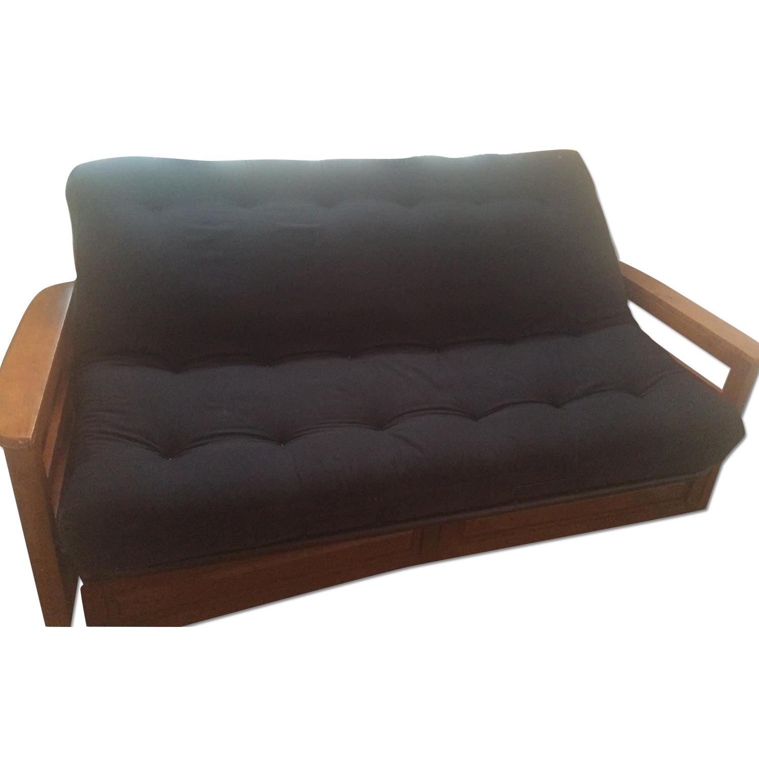 Seller's Notes:Good futon - black. Mostly been used as a bed. Armrests lift up for storage, as well as storage space on the sides of the frame.