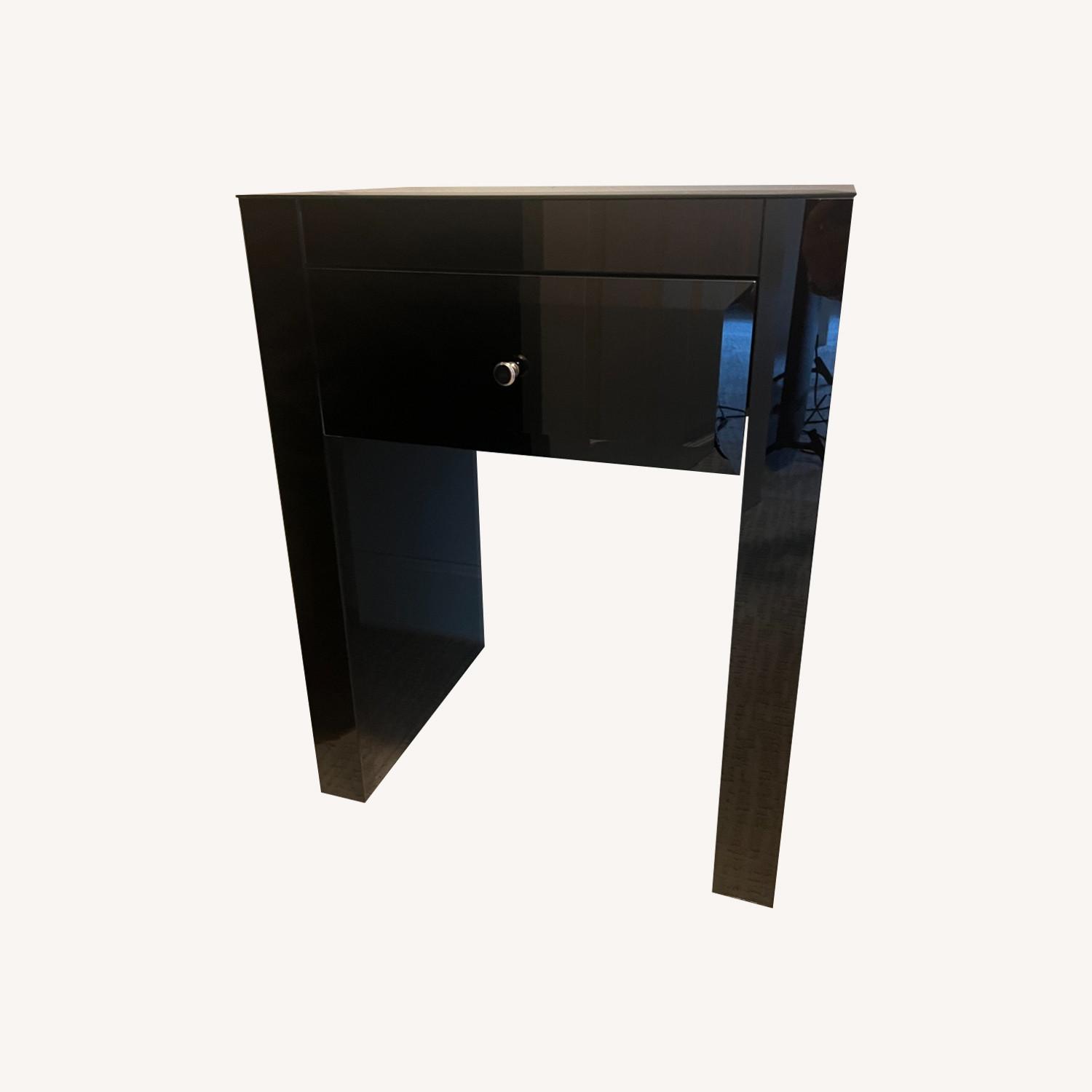 Seller's Notes:2 high quality black, wood veneer and glass nightstands from a local furniture store in Chappaqua, NY. Brand unknown, but totally functional and stylish black nightstands that we used for several years and no longer have a use for. They each have a large drawer and are fairly heavy.