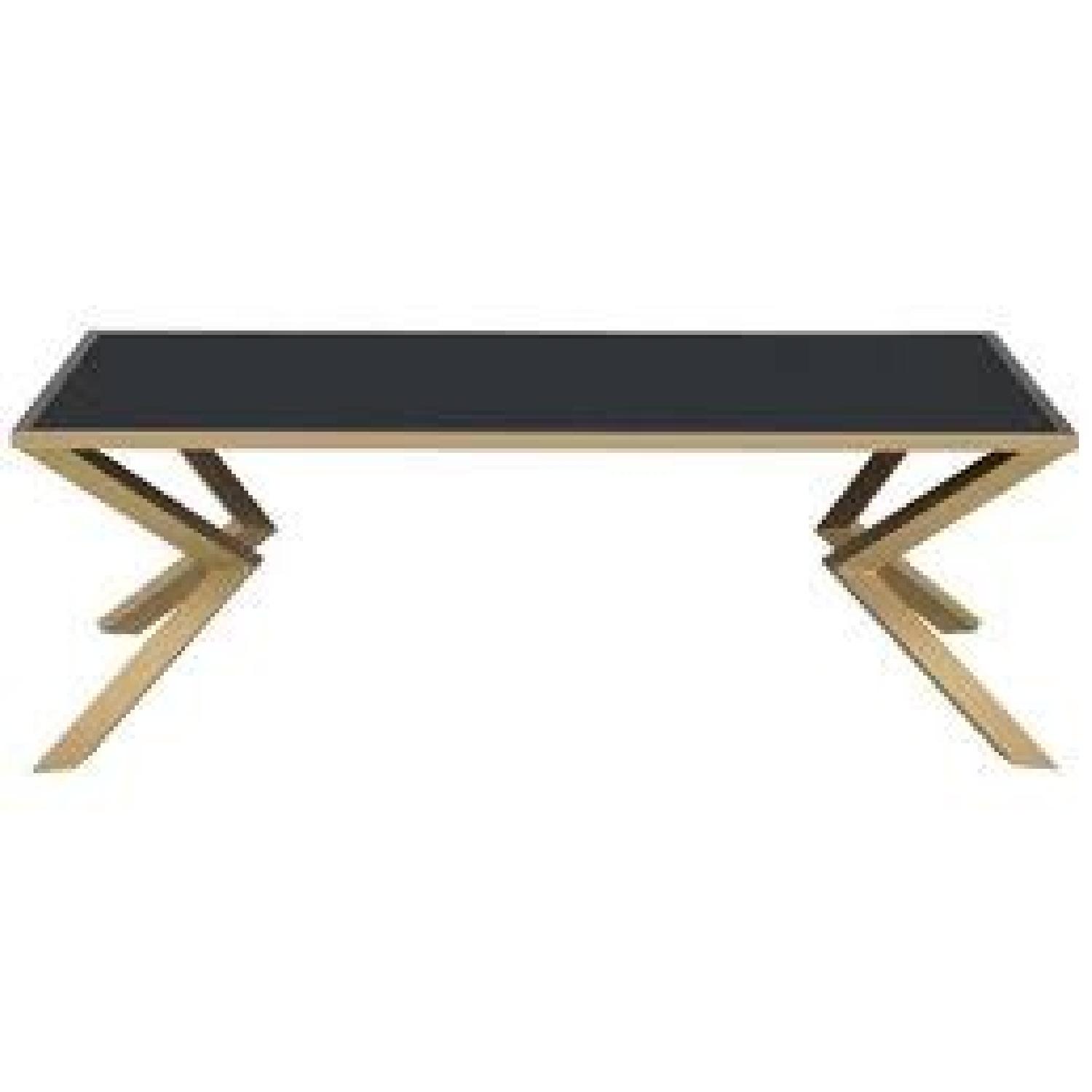 Black Glass Top Coffee Table with Brushed Brass Legs