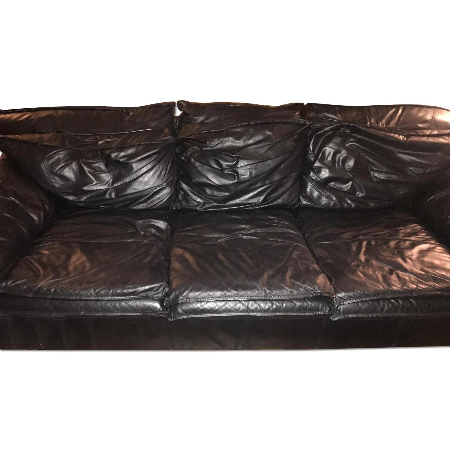 Black Leather 3 Seater Sofa & Ottoman