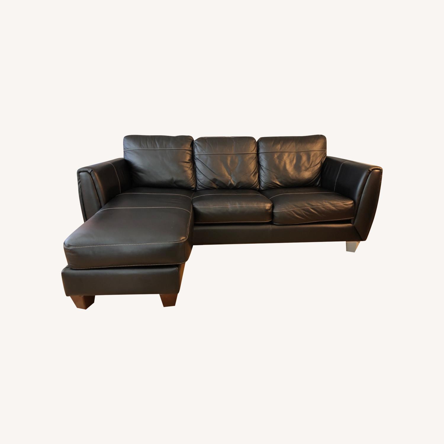 Seller's Notes:This is an immaculate condition Jennifer convertible brand leather Black sofa with a reversible/interchangeable chaise lounger , I have hardly used it as my job has required me to travel constantly since I purchased it so it looks brand new ! no blemishes or wear and tear at all and color is still as solid and bright as day one !