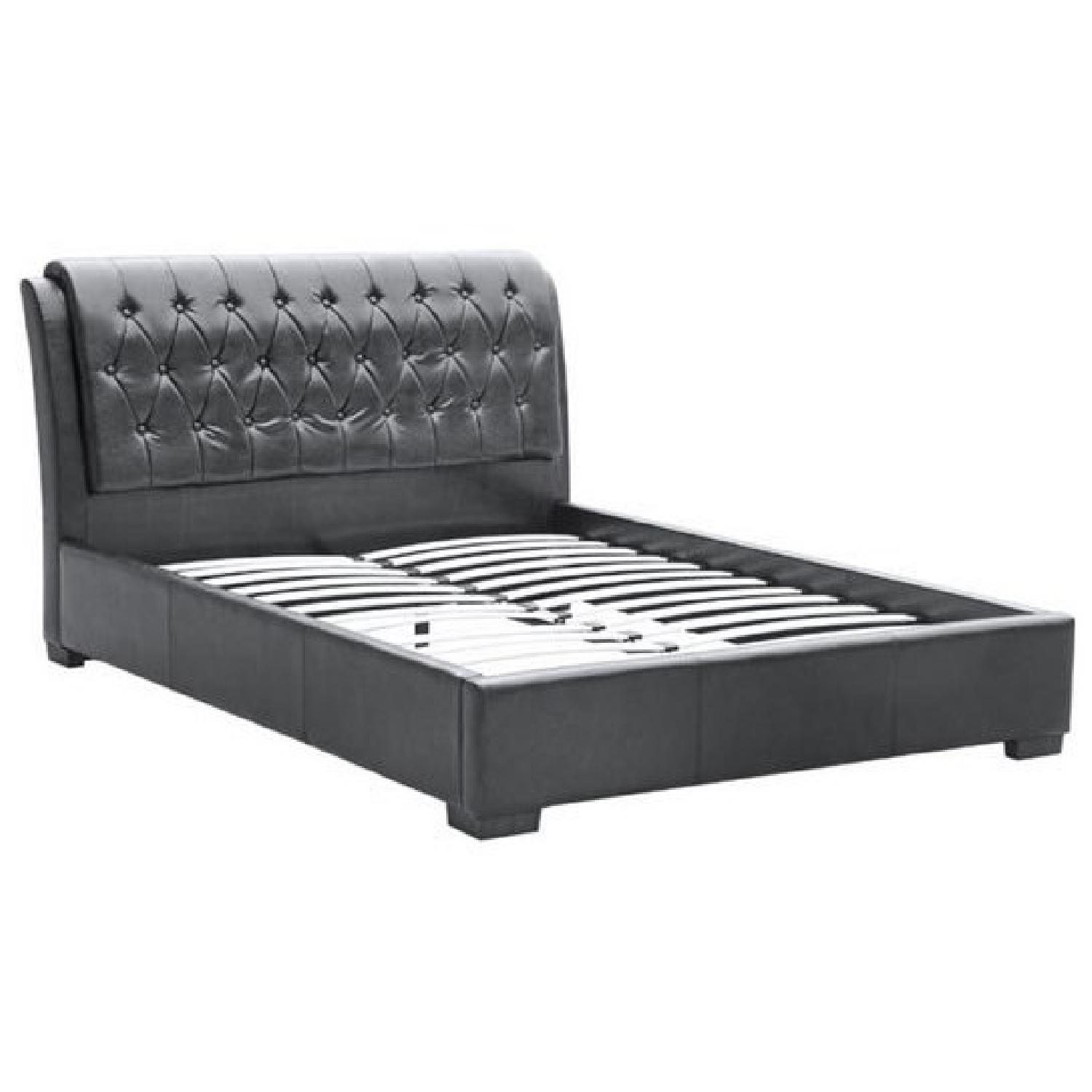 Black Leatherette Queen Size Bed w/ Tufted Headboard
