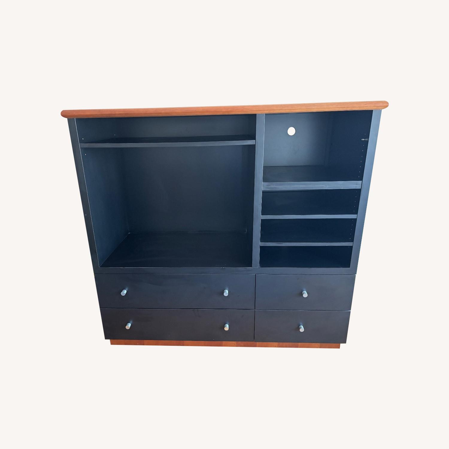 Seller's Notes:Custom made cabinetry losing its home due to move. Has many good years left. 4 drawers, adjustable shelves. There are 2 small dents in frame below TV section and can be easily fixed with putty by next owner. Looking to sell quickly!