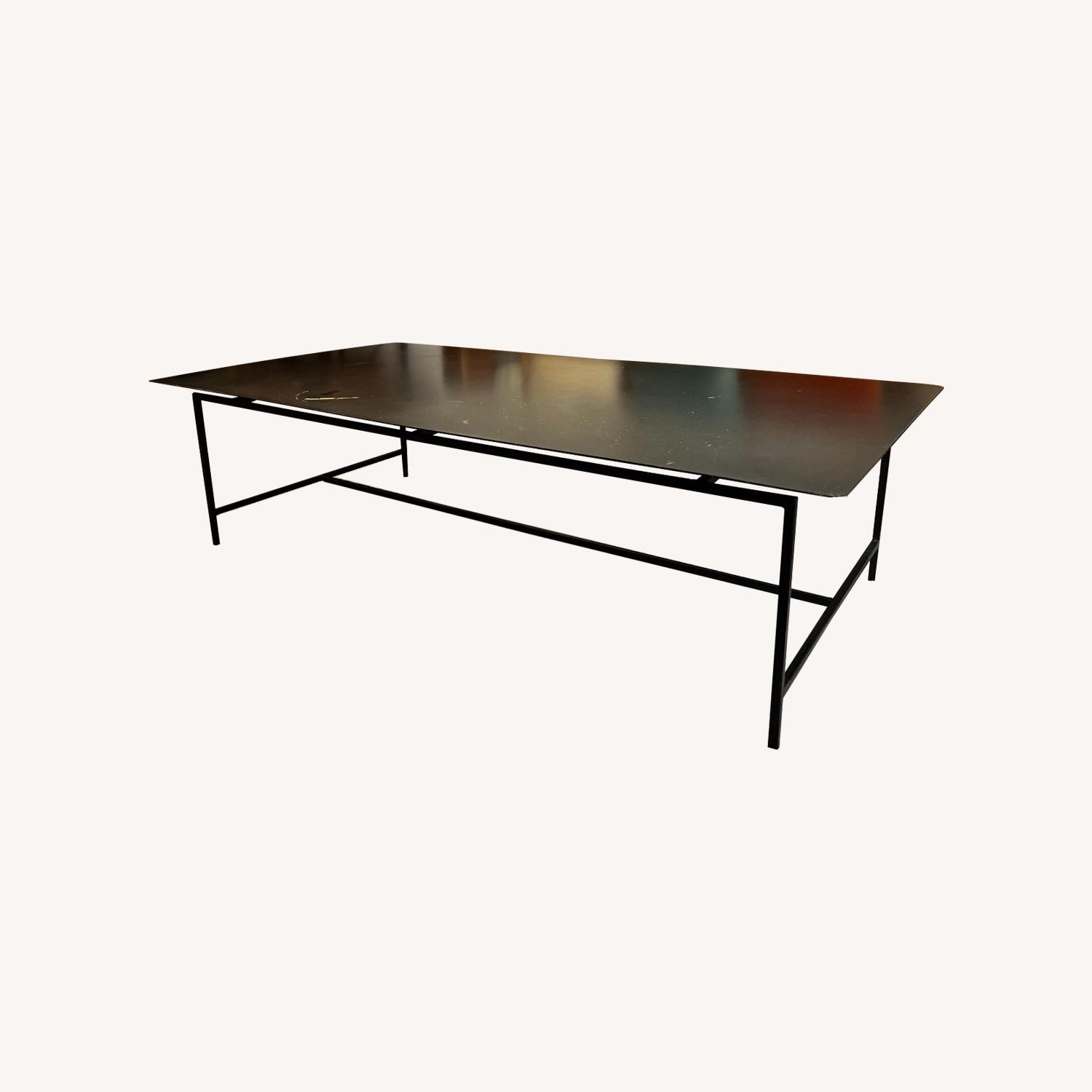 Seller's Notes:Another lovely item that came with us from London. It is a metal table in black. While the table is very sturdy and well-made and we love its industrial look, the metal surface can be easily scratched and marked. It is clean and well-kept but it has several scratches on the surface.