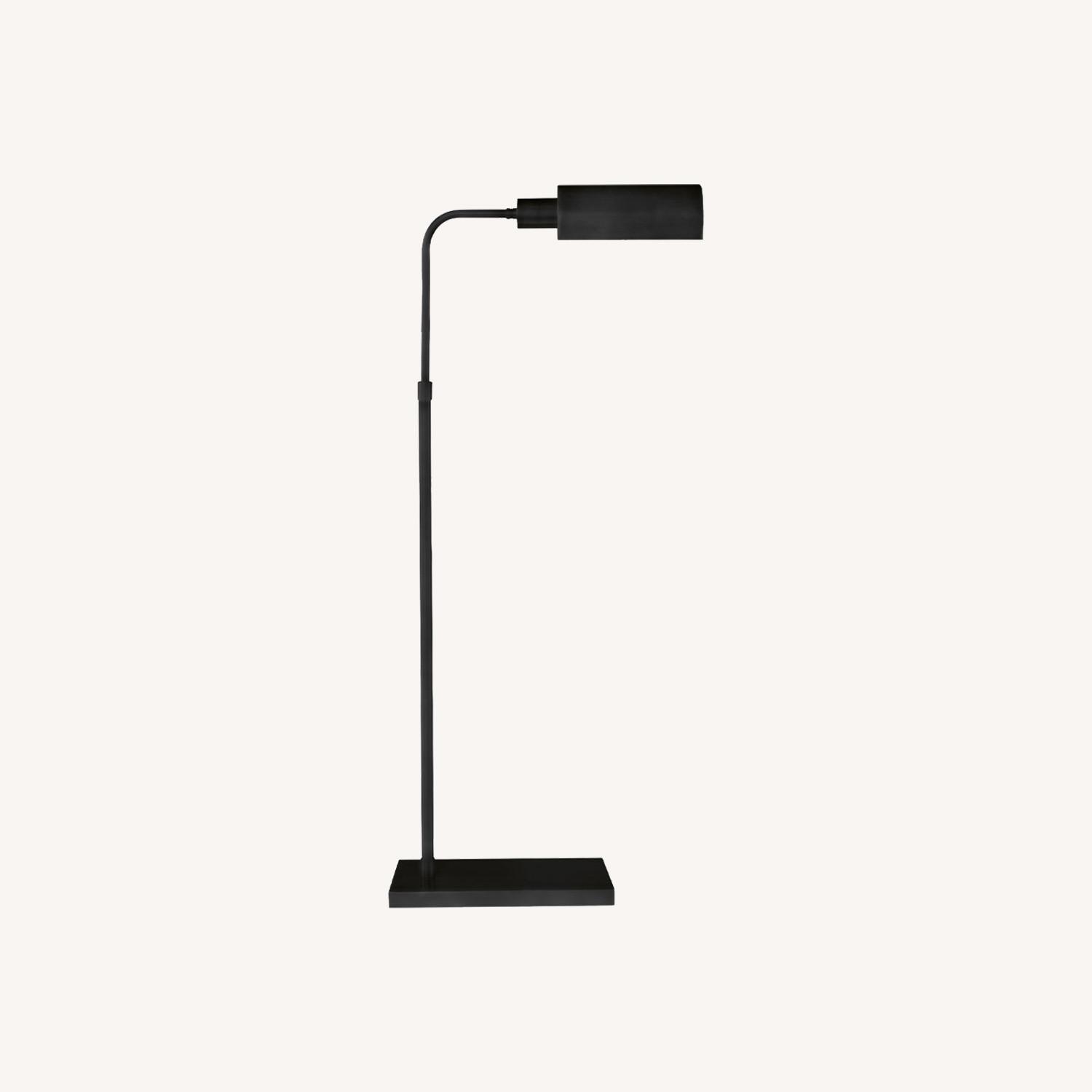 Seller's Notes:Sleek black metal floor lamp with a minimalist silhouette and adjustable height arm. Clean lines and a matte finish give it a modern, architectural feel without overpowering the space. Perfect next to a sofa or reading chair for focused task lighting or soft ambient glow. • Black metal construction • Adjustable arm and shade • Slim, space-saving profile • Sturdy base • Excellent condition Simple, timeless, and effortlessly elevated.