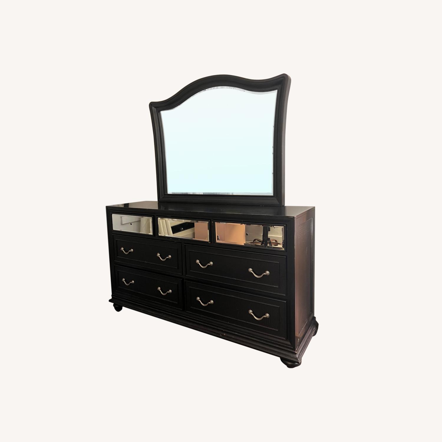 Black Mirror Drawer Dresser with Mounted Mirror