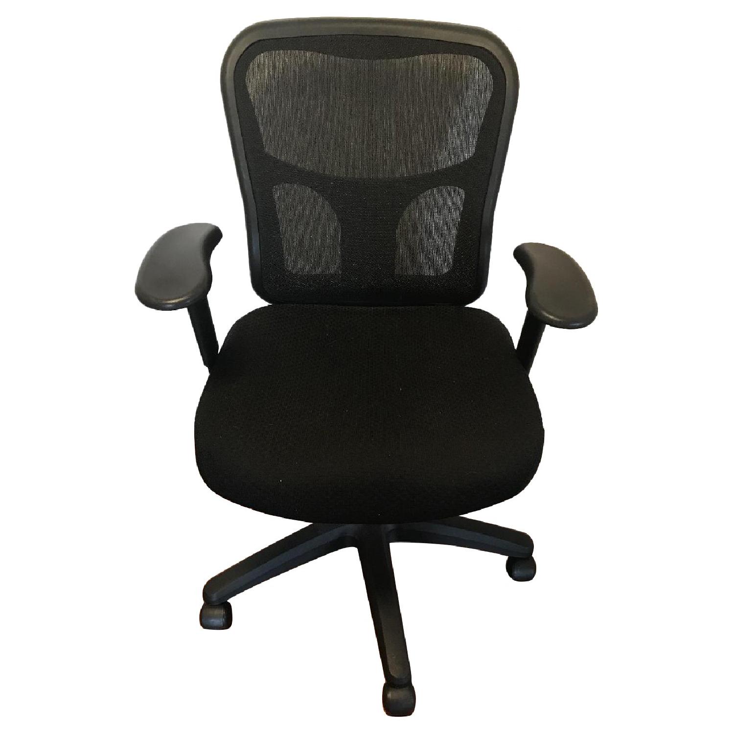 Seller's Notes:Very comfortable black desk chair with tempapedic seat, breatheable mesh back and solid construction.
