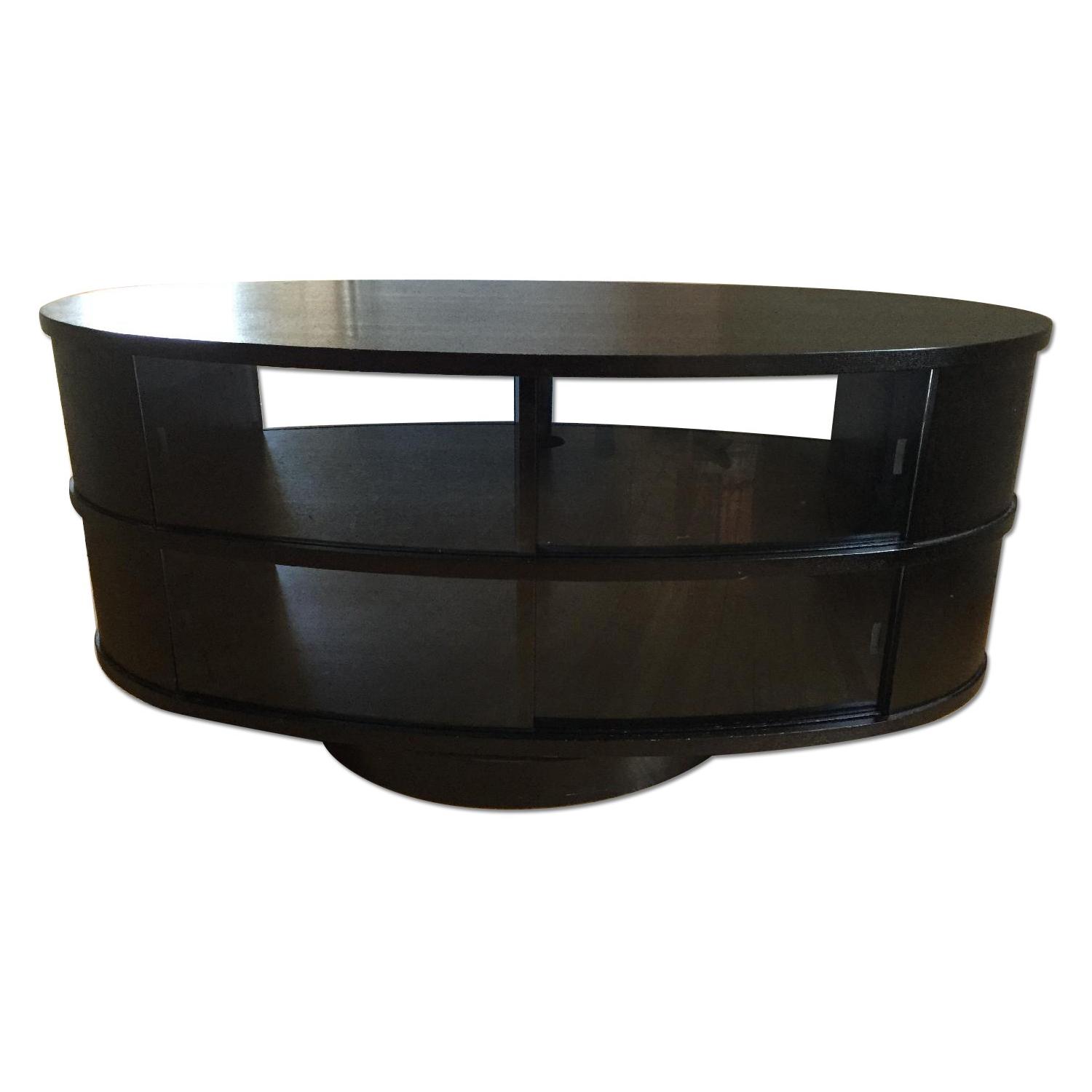 Black Oval Swivel TV stand with Sliding Glass Doors