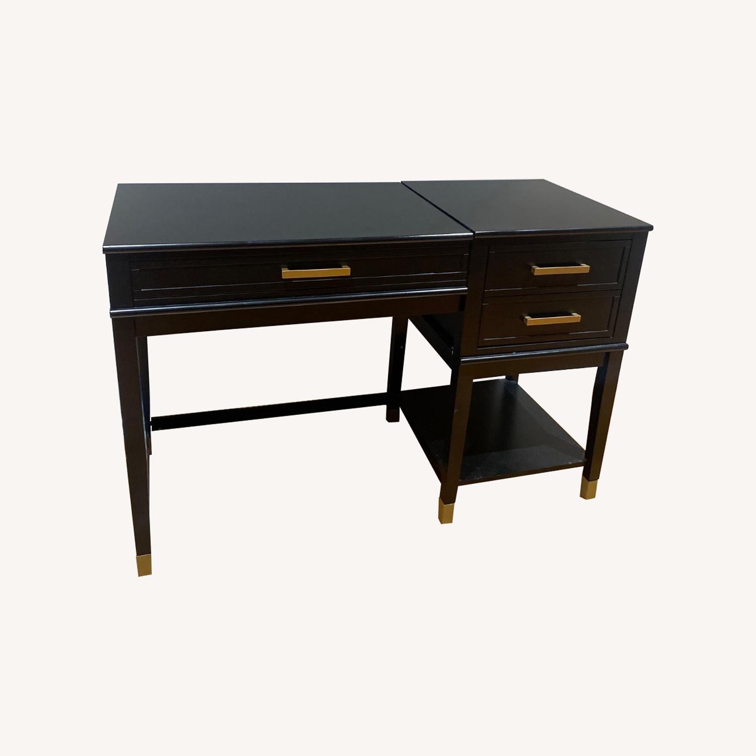 Work in style with the CosmoLiving by Cosmopolitan Westerleigh Lift Desk. Accented with trendy gold hardware and dipped feet, the Westerleigh includes two spacious drawers to store your ~things~. Here's the game-changer: the top surface lifts up so you can work like a boss with options of sitting or standing. Available in white, graphite gray, or matte black, this glam desk nails the decor game.