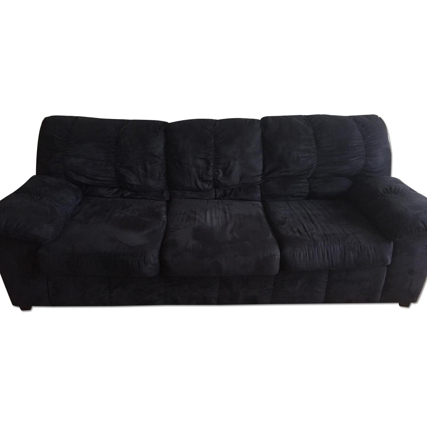 Seller's Notes:Black suede sofa -- a few years old but still in great condition. No real blemishes or damage to speak of. Very comfortable, seats 3+.