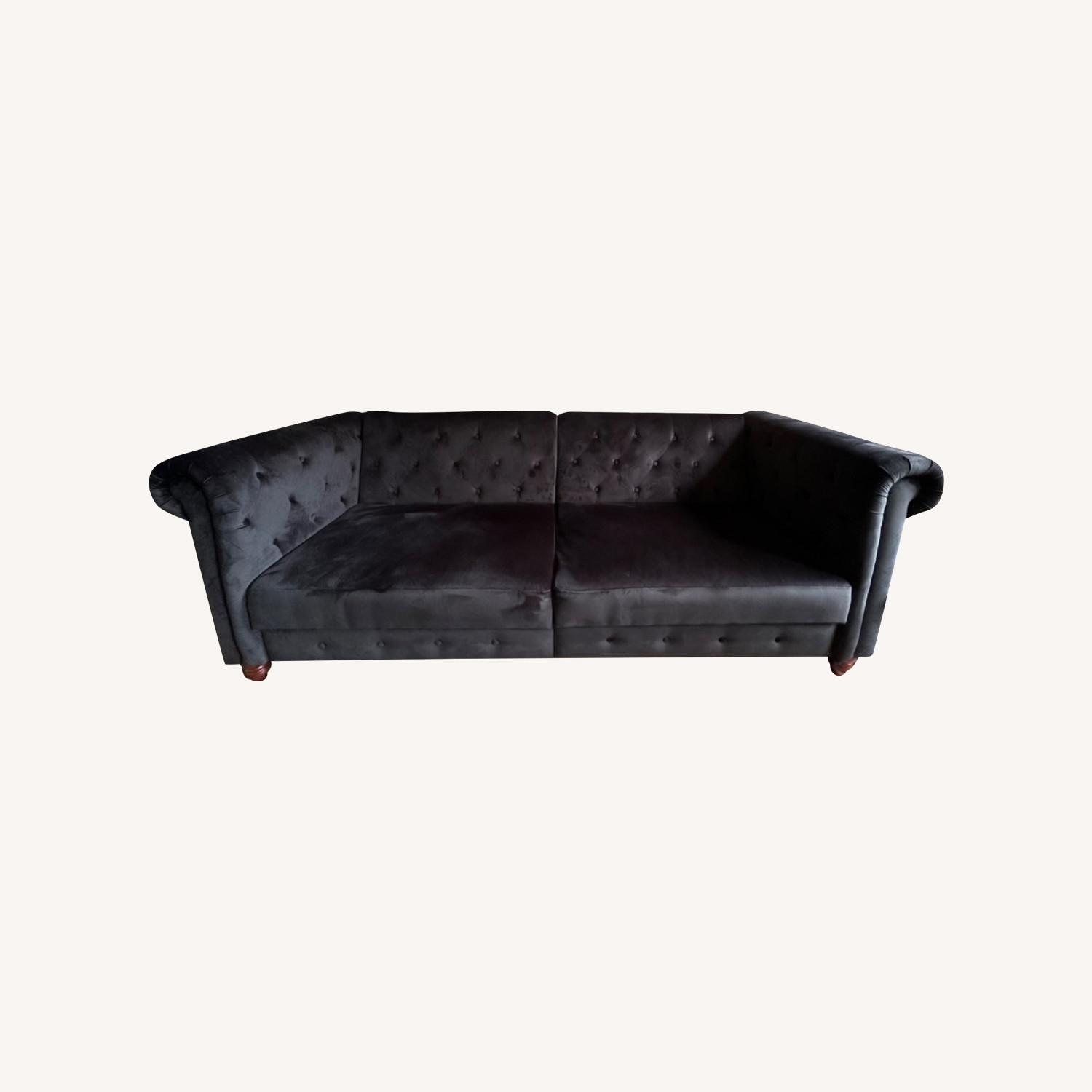 Seller's Notes:Black velvet couch! In perfect condition. Folds down into bed Couch dimensions: 89.5”L x 34”W x 32.5”H. Sleeping dimensions: 71.5”L x 42.5”W x 18”H. Weight limit: 600 lb