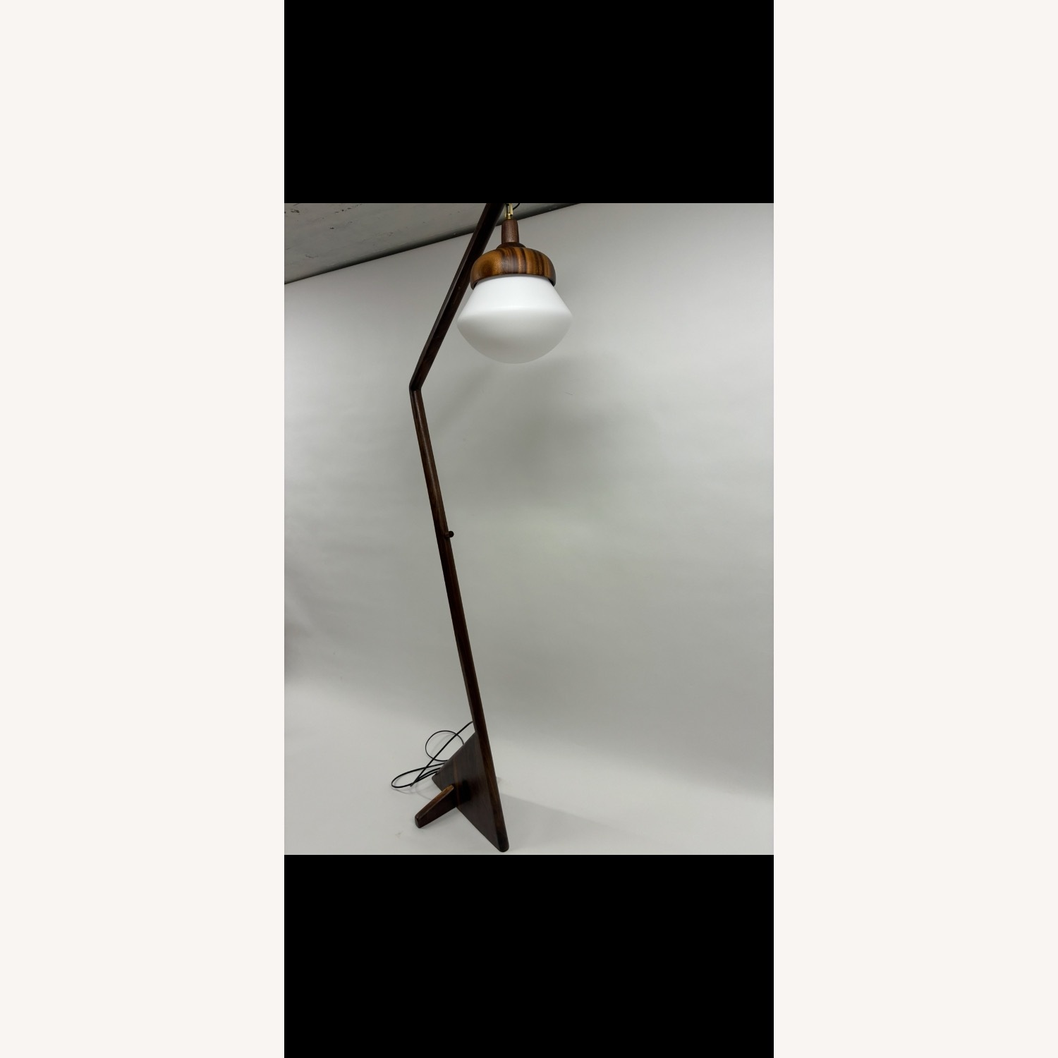 Seller's Notes:One of a kind black walnut wood curve floor lamp is a timeless solid wood sculpture art piece the lampshade and lamp base is entirely made from same black walnut tree