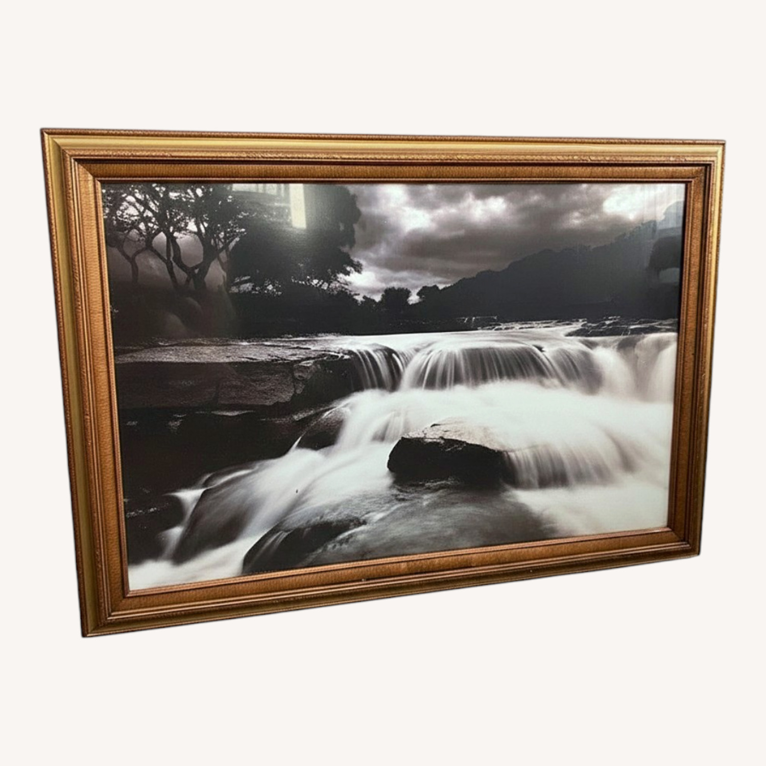 Seller's Notes:The framed art print "Yorkshire Dales Waterfall" by Tony Bowran Switzerland 1990 is a stunning landscape image depicting a waterfall in the Yorkshire Dales region. This licensed reprint features the artist's contemporary style on paper, showcasing the beauty of nature in a framed piece from the 1990s. With a focus on landscape and waterfalls, this art print captures a moment in time from the Swiss Alps and brings a touch of nature into any living space. W41 x H 30