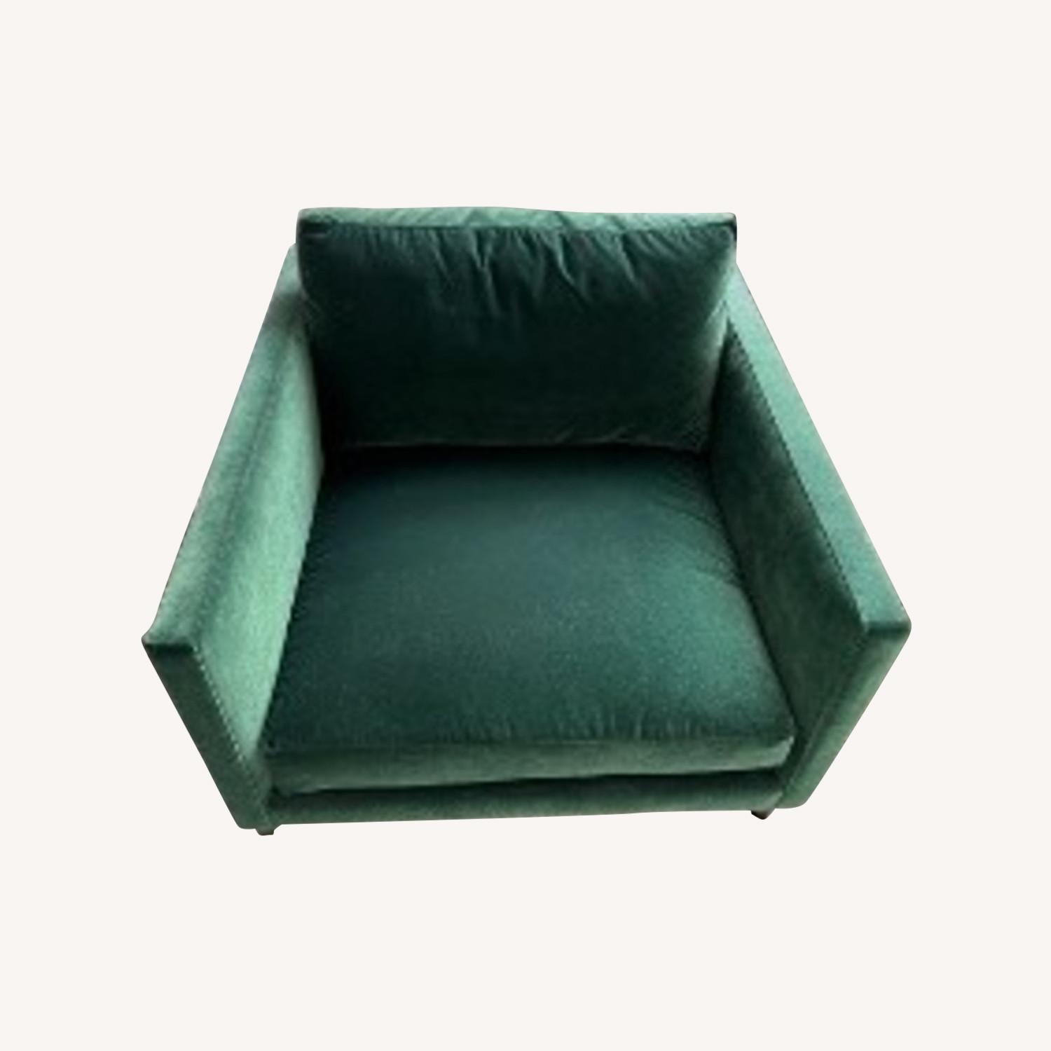 Seller's Notes:Selling because I am moving to a new country and selling all of my furniture. I bought this last year and have barely used this chair. A strong green velvet, pristine upholstery, with a wooden frame. Super comfortable. -Pristine Condition -Velvet upholstery -Solid wood frame -Purchased at Bloomingdale’s NYC