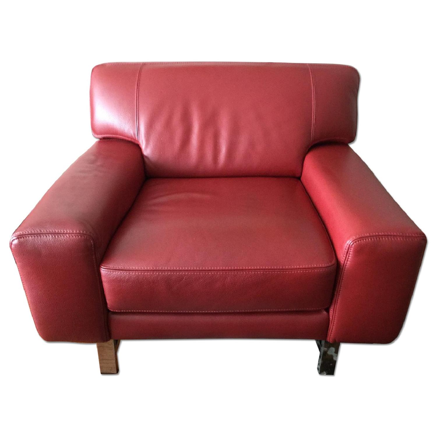 Seller's Notes:Outsize red leather armchair from Bloomingdale's. In tip-top condition - no stains, scratches or tears. I am selling because I am redecorating. My apartment is Pet-free and smoke-free.