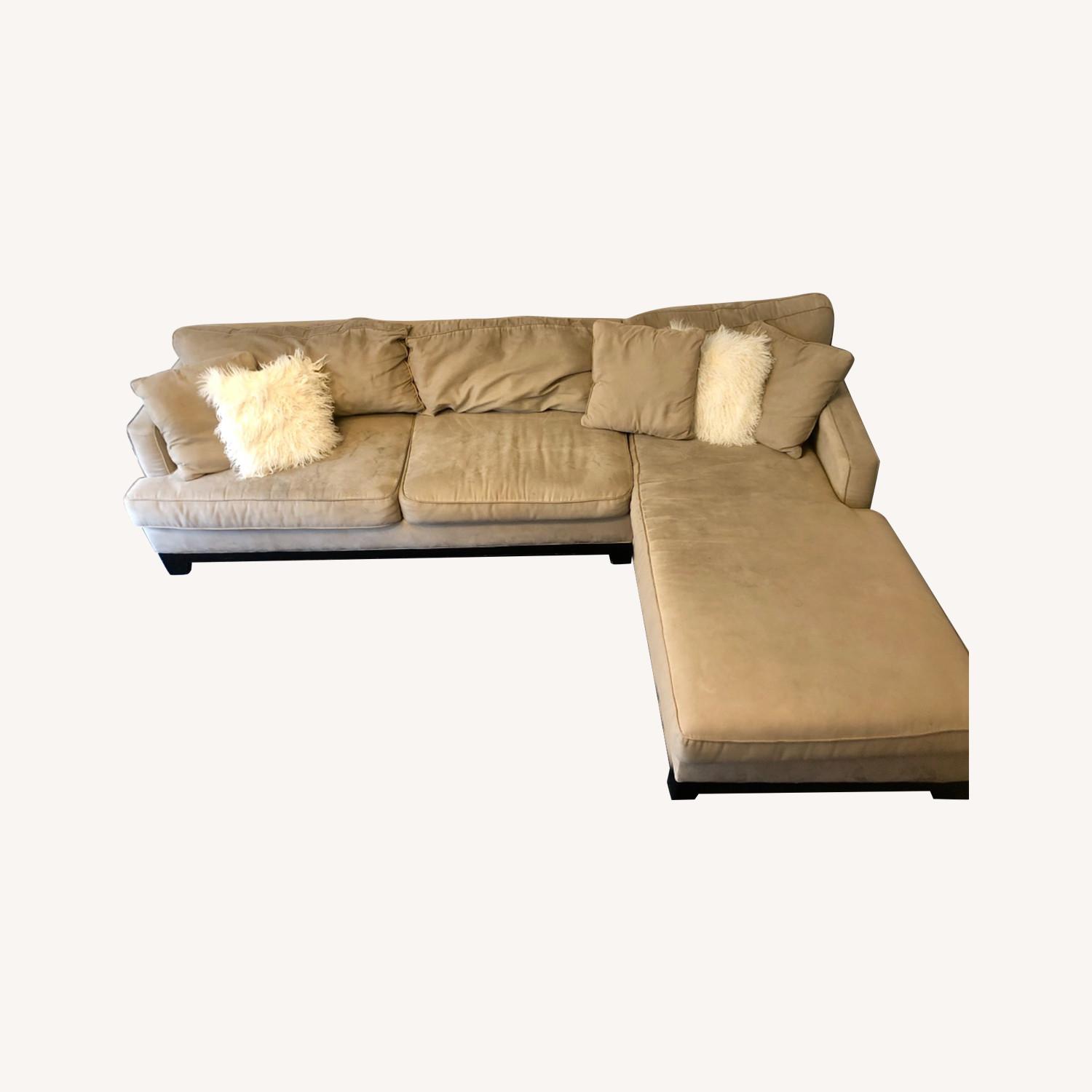 Seller's Notes:Hello! We are offering an extra comfy Large Family Sectional Couch. It has brought us great joy but sadly won't fit in our new home and so we are offering it at $500.00 or your best offer! It's approx: 113’ in L x 37 in W x 80 in W (Chaise Portion). ***PLEASE NOTE this couch is used but gratefully is made of micro fiber and would simply need a steam cleaning to get the small markings off on this extremely comfortable couch. Unfortunately a pre cleaning will not be possible given the climate and this quick turnaround of a move. PICK UP NEEDS TO BE JULY 16th - 20th.