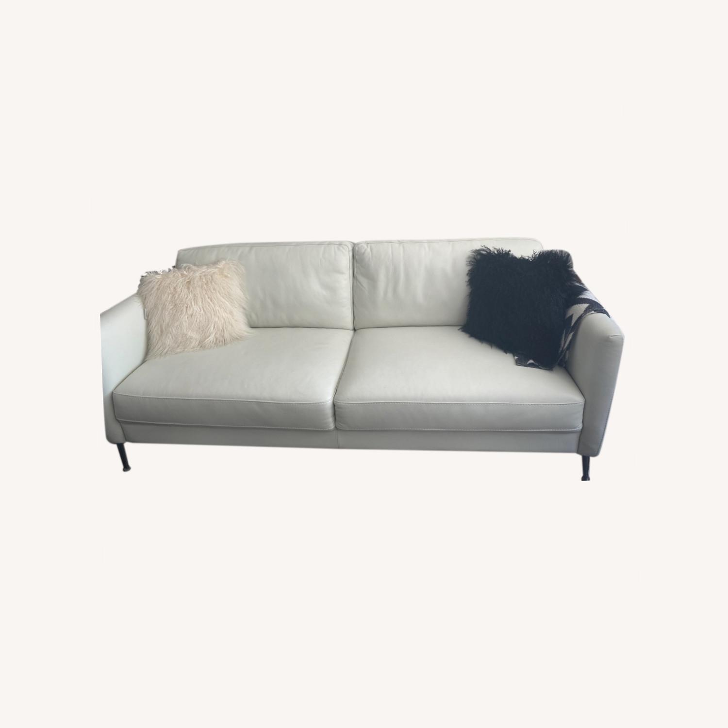 Seller's Notes:White Leather Sofa in good condition from Bloomingdale's. Only 2 years old with minor scratches. Also have the white leather cleaning kit that I purchased with the couch, never used that can put with it. Very comfortable and great piece for a living room office or even bedroom!