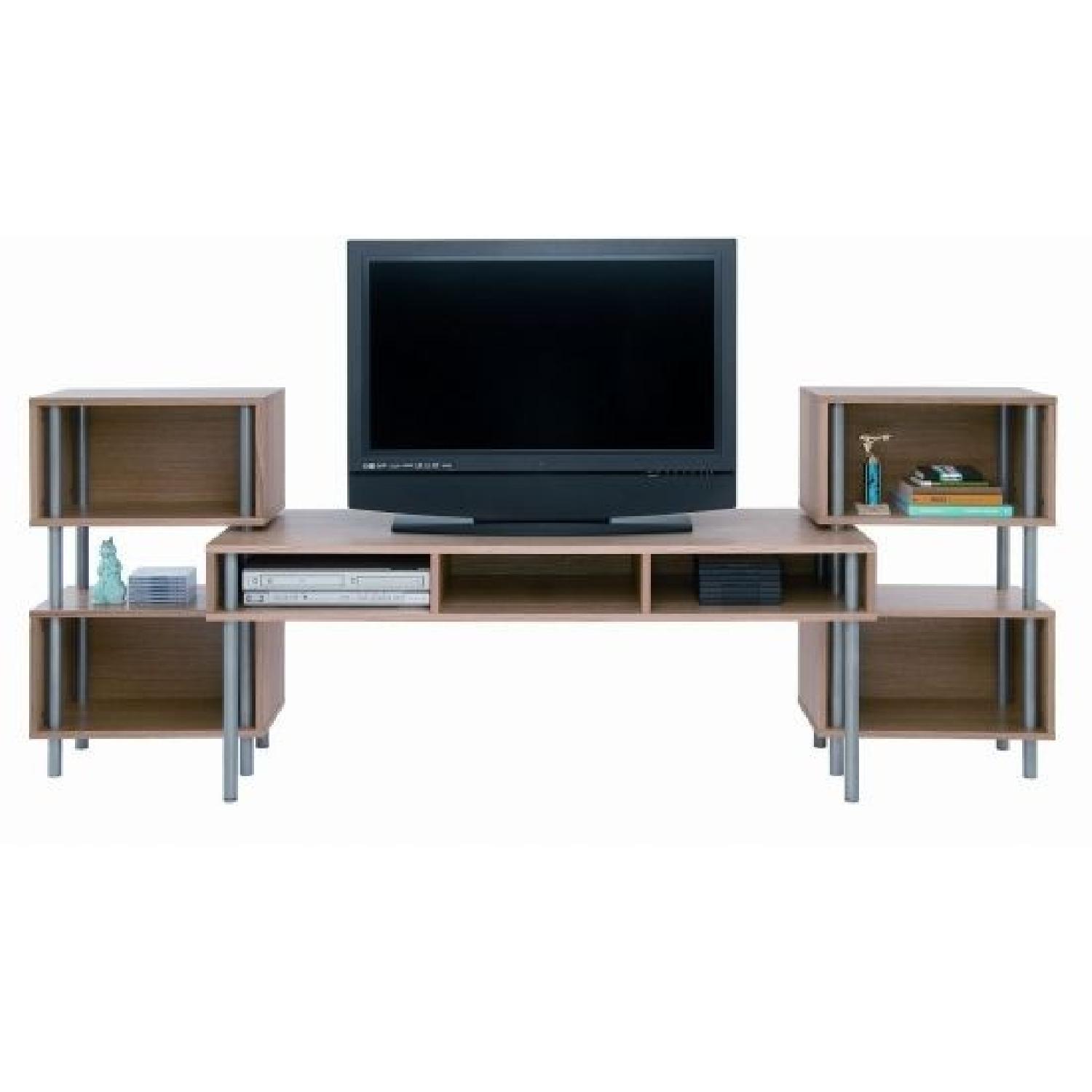 Seller's Notes:This Blu Dot Chicago Media Center is in excellent condition. It has plenty of room for a dvd player, stereo, game remotes, cds, dvds, and books. It's a wonderful piece for a living room or den. We are only selling it because we moved and no longer have room for it in our tv room. It disassembles easily into three pieces for easier moving. This is an extremely solid, well-made piece of furniture. Blu Dot is no longer making this exact item, but is still being sold new here: http://www.amazon.com/Chicago-Media-Blu-Dot-White/dp/B00IJIVYTG Full dimensions are: 98" long. The two side pieces are 38" high; the middle part is 24" high. The middle part is 22" deep and the two sides are 12 " deep.