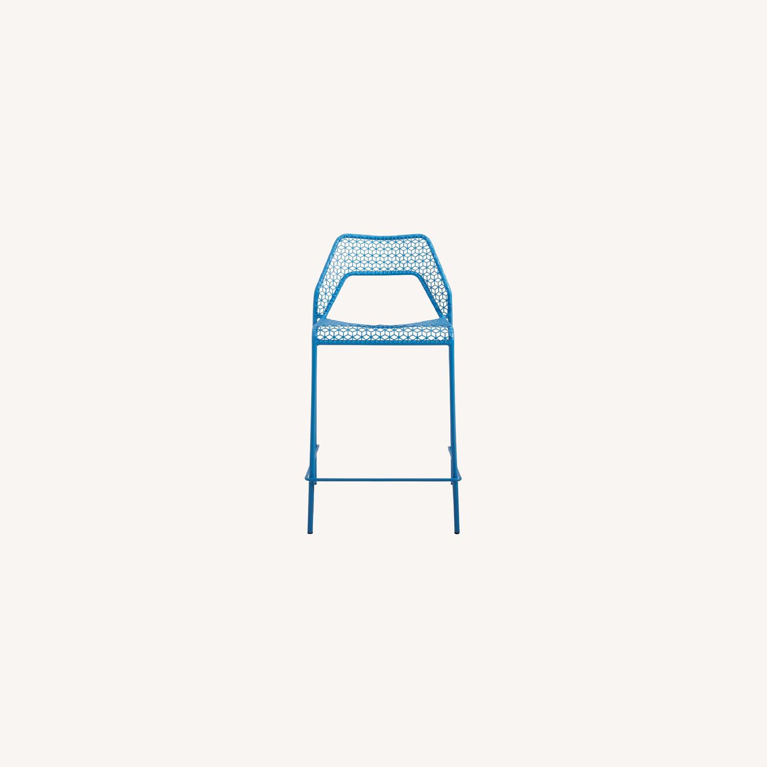 Seller's Notes:"Hot Mesh Counterstool" from Blu Dot, in Simple Blue. Perfect set for dining at the kitchen counter. I used this exclusively indoors but it is also suitable for outdoor use. Material: Powder coated steel. Plastic glides on the legs to protect surfaces. The blue color is vibrant and cheery. Assembly: Fully assembled, stackable for easy storage. Condition: Good condition, the steel has some minor scratches (please see detail photo for example). The scratches are not particularly noticeable since there is no discoloration.