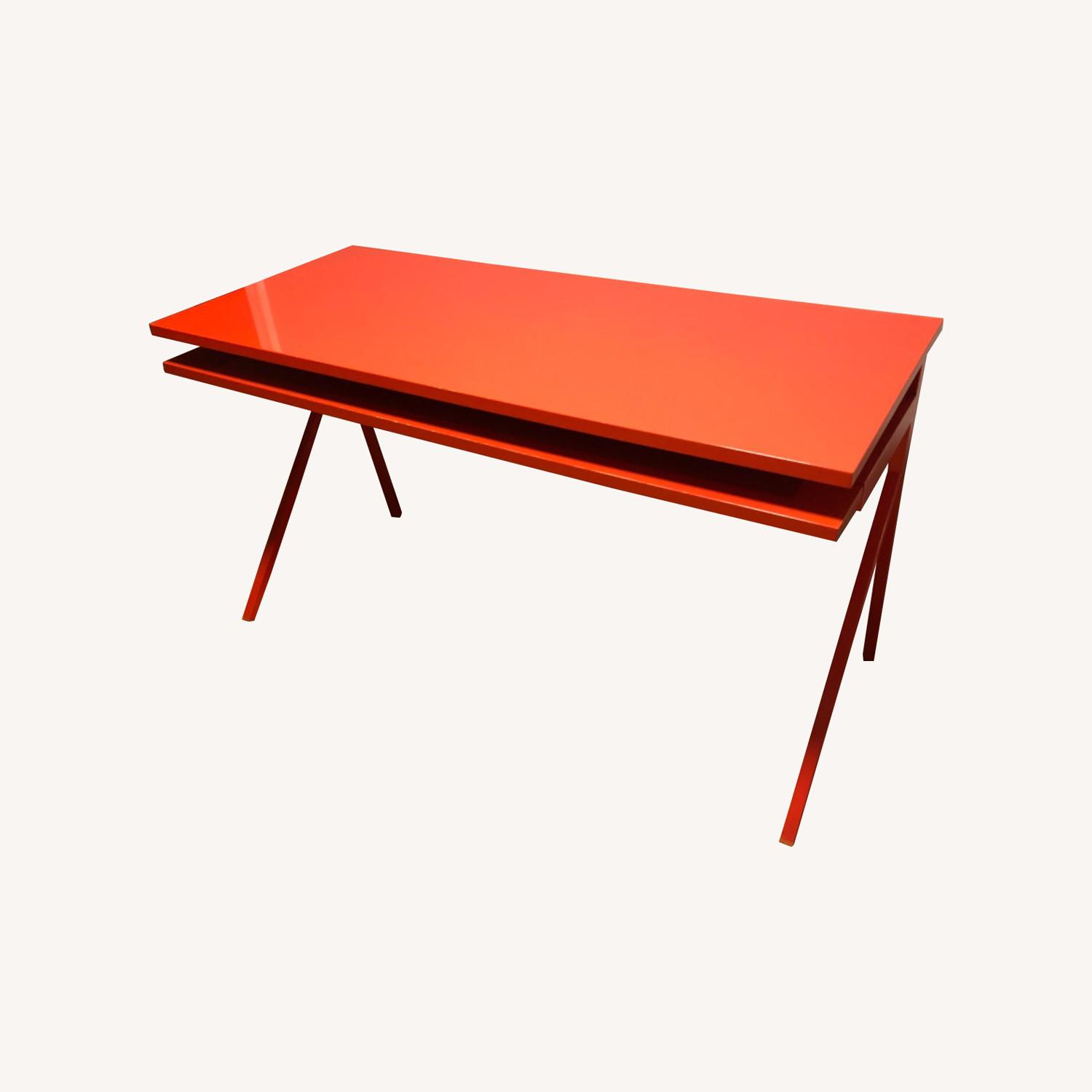 Seller's Notes:Blu Dot Red Designer Desk (model Desk 51, https://www.bludot.com/desk-51.html): sleek and modern, in beautiful red color; slightly used (some chips on the edges in the front, see photos); otherwise in excellent condition, solid and sturdy; dimensions: 24.5” (D) x 56” (W) x 31” (H). Local pickup at East 96th St and Lexington Ave., Manhattan.