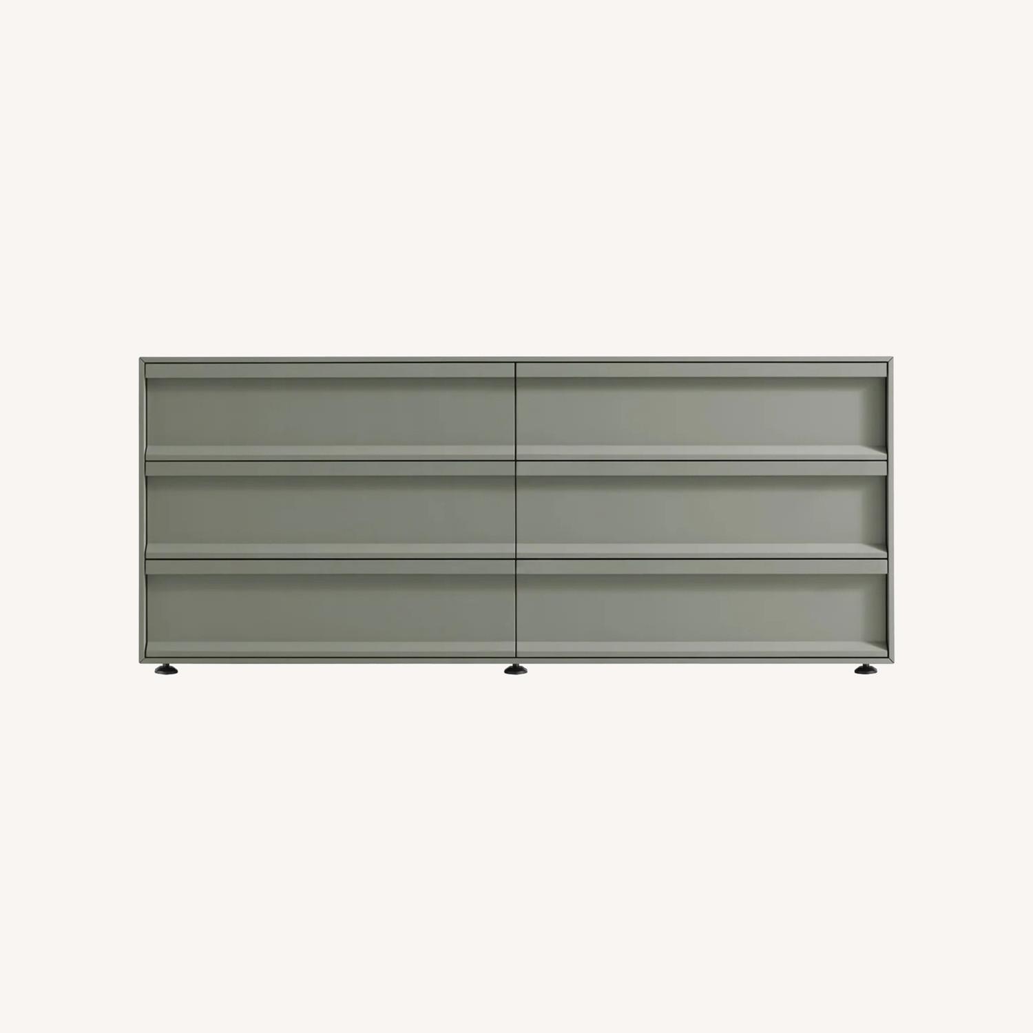 Seller's Notes:Blu Dot SuperChoice 6 Drawer Dresser in Green/Grey. Really pretty finish. Lovely dresser, we just need more space! A few dings, reflected in the price.