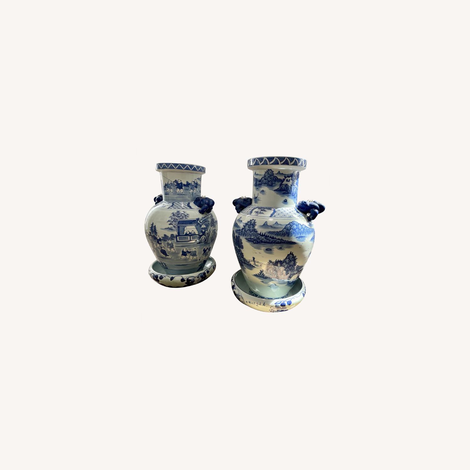 Seller's Notes:Prices and sold as a set. 2 feet, 5 inches tall, Asian, ceramic floor vases. Widest circumference 49"