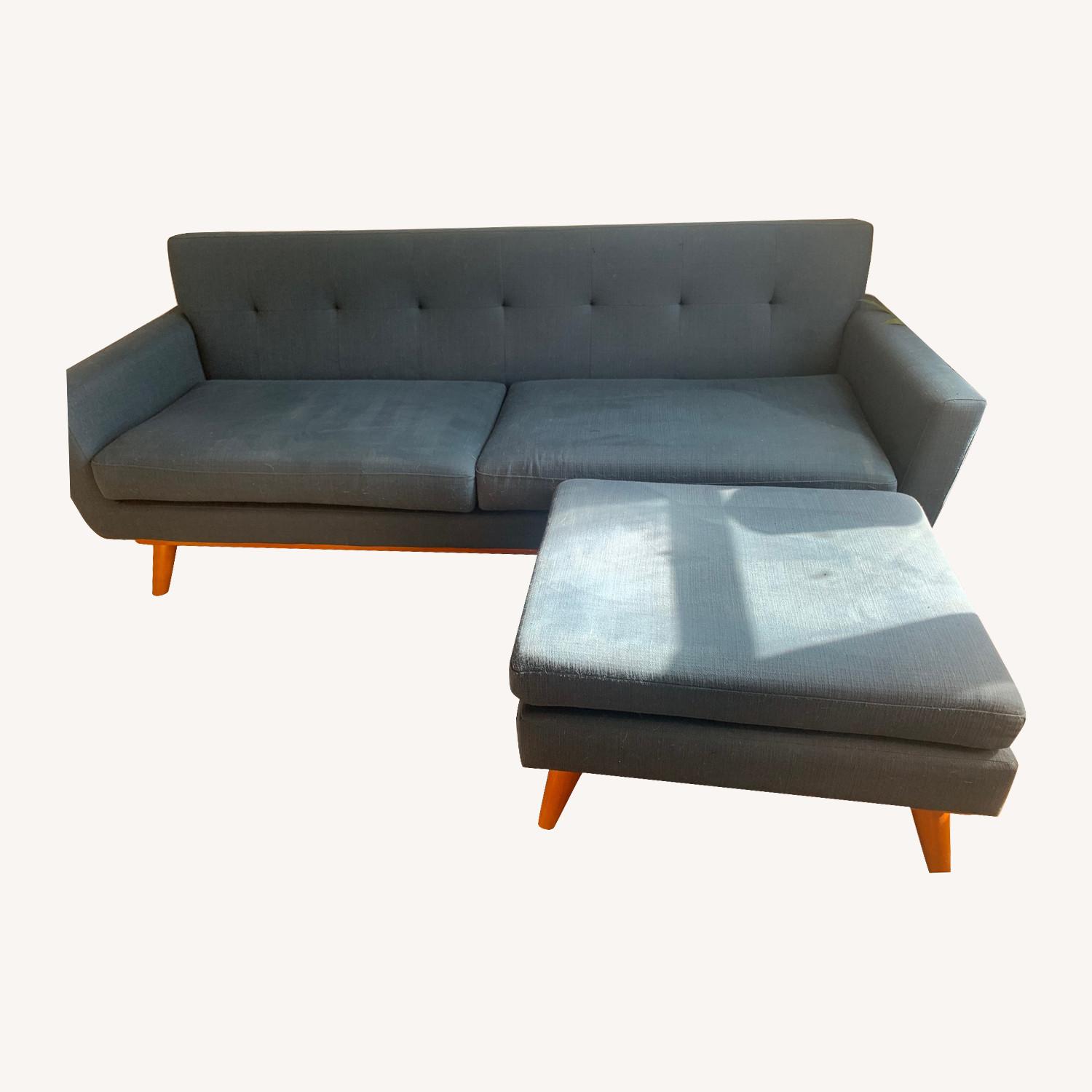 Seller's Notes:3 seater sofa has plenty of good years left. Also comes with an ottoman. Easy to transport and the legs come off to fit through narrow doorways. We have loved this sofa but are going to get a leather couch as part of a redecoration. Ottoman is 32”x25” Our blue sofa has served us well and is now ready for its next home!