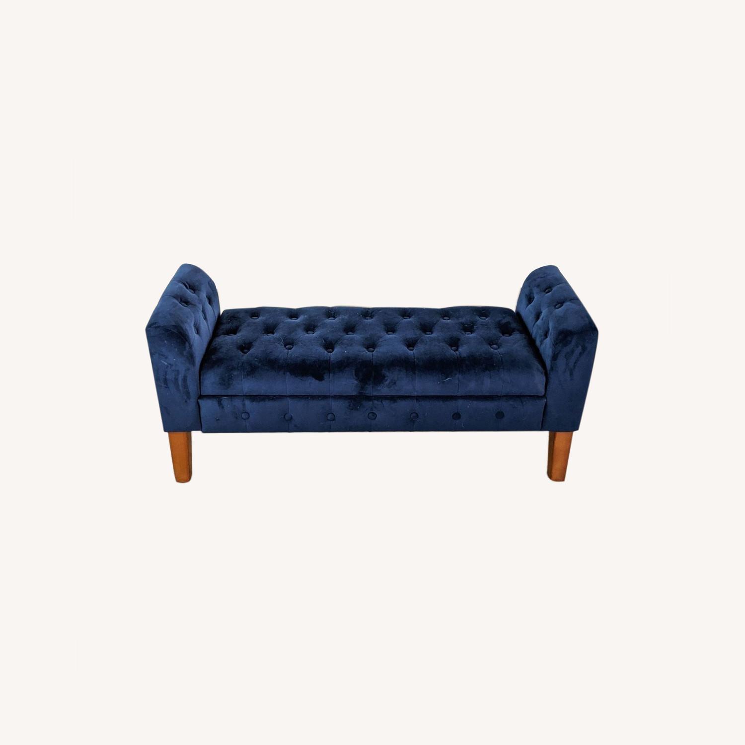 Blue Upholstered Bench with Storage