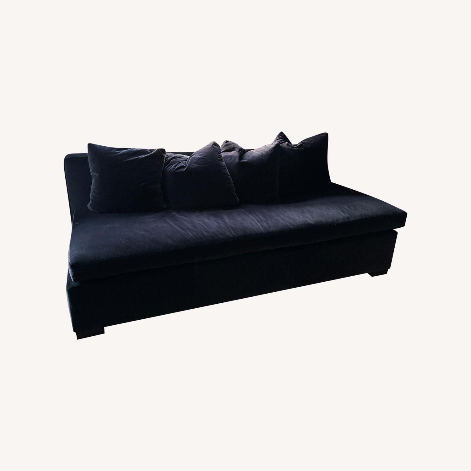 Seller's Notes:Purchased in a Soho boutique back in 2016, this couch is perfect for sitting and hanging, deep enough to sleep on, elegant, and well loved. It has some discoloration at the back where it sat in the sun against the window, but it's still got lots of life. Extremely comfortable and cool, hoping she finds a nice home.