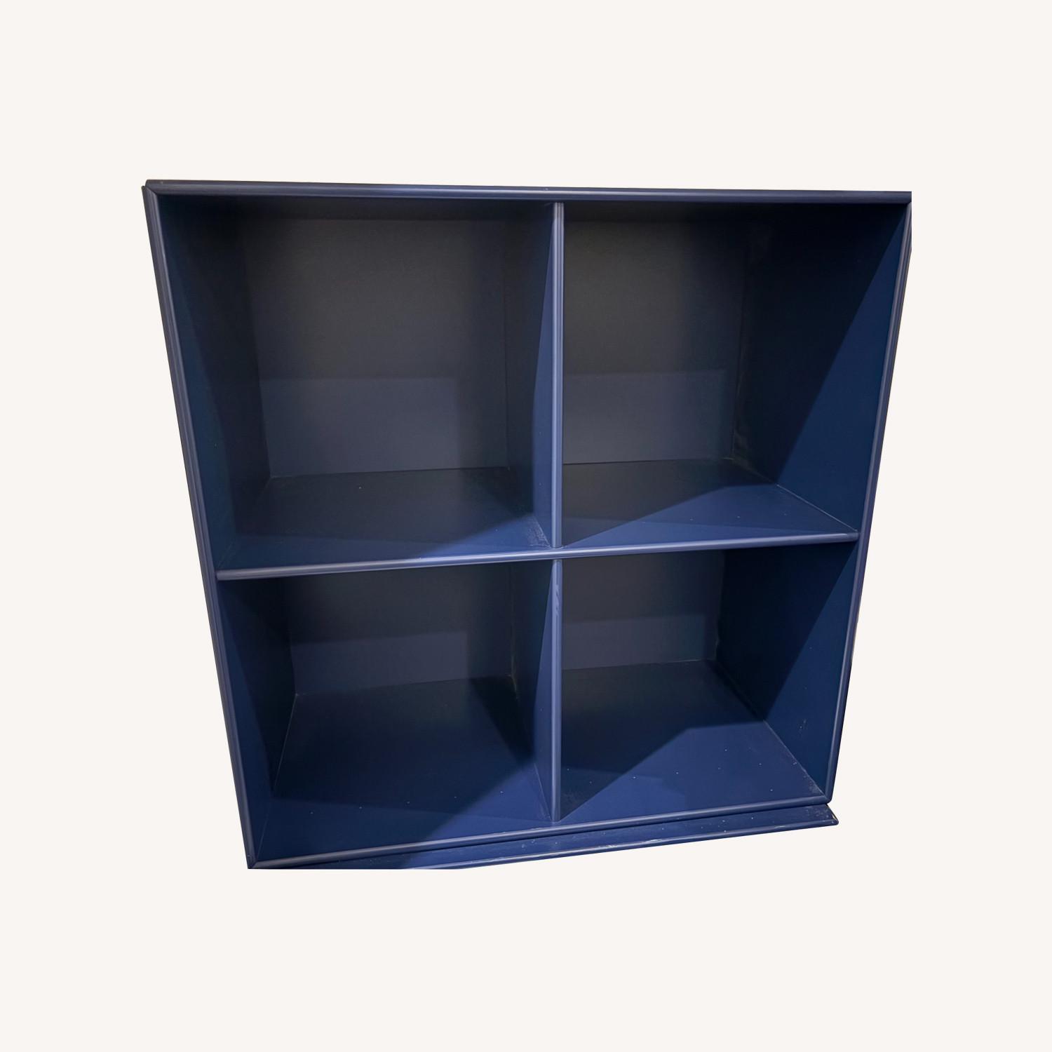 Seller's Notes:I have 2 identical (and stackable) sets of 4x4 dark blue wooden cube bookcase/shelving (cubbies) for sale. Please take both! Fairly good condition - about 30 years old! Originally from Switzerland (they've traveled a bit!). size / dimensions: 27.5 x 27.5 x 15