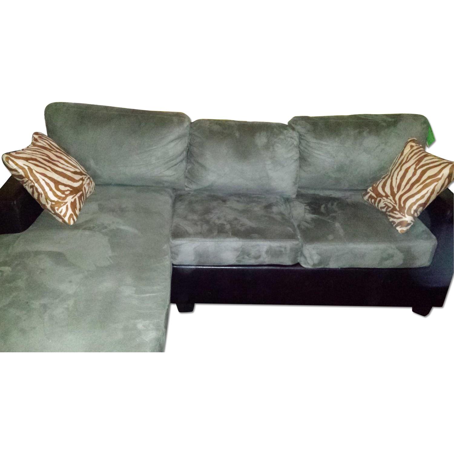 Bobkona Olive Green Sectional with Tan and Brown Pillows