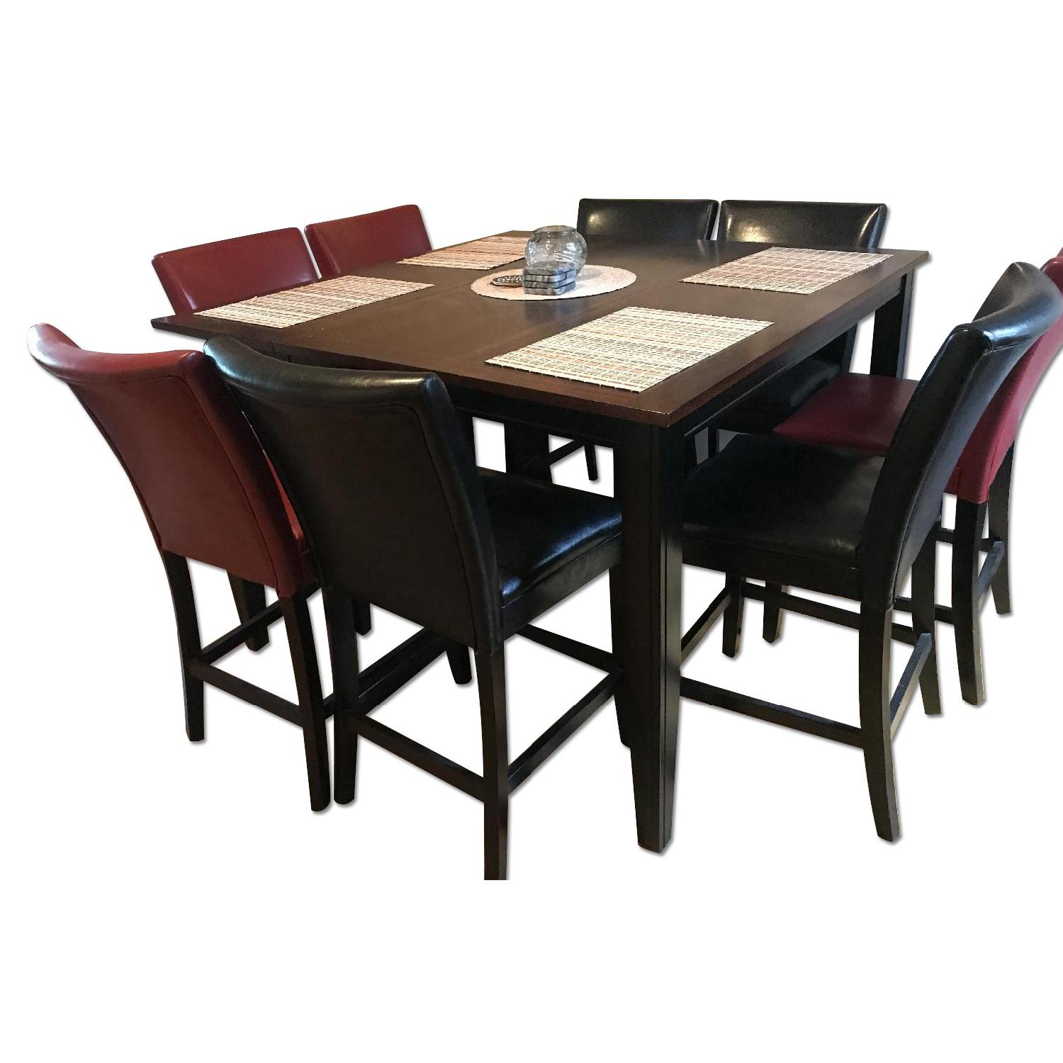 Bob's Cherry & Black Finish Pub Dining Table w/ 8 Chairs