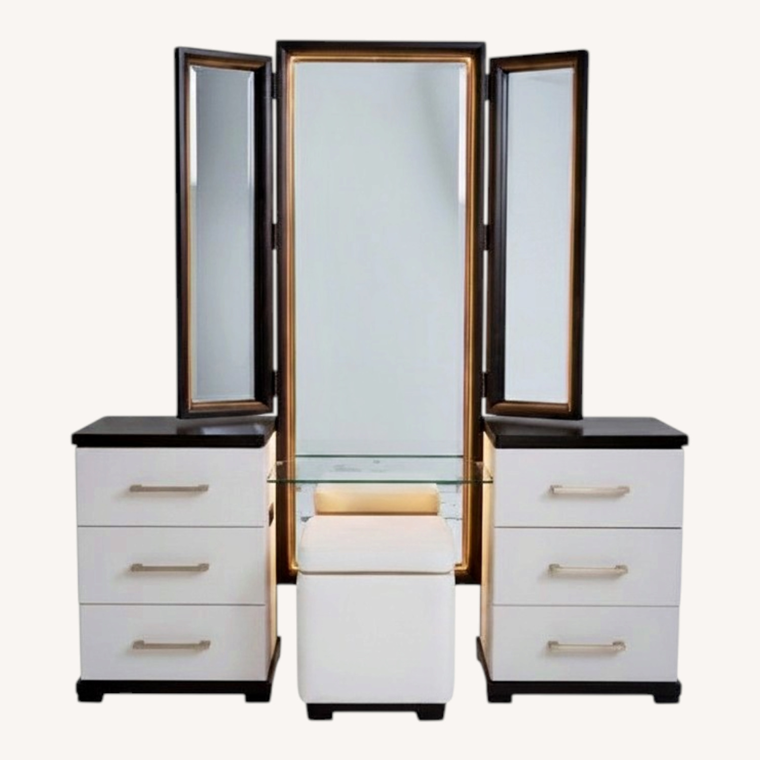 Welcome to your getting-ready wonderland…where the mirror glows, and felt-lined top drawers hold more than you could imagine! Plus, cord management openings and built-in USB/USB-C ports make doing your hair or charging your devices seamless. Did I mention the stool features sleek faux leather upholstery and a layer of my Bob-O-Pedic® Memory Foam? Yeah, I thought you'd like that...