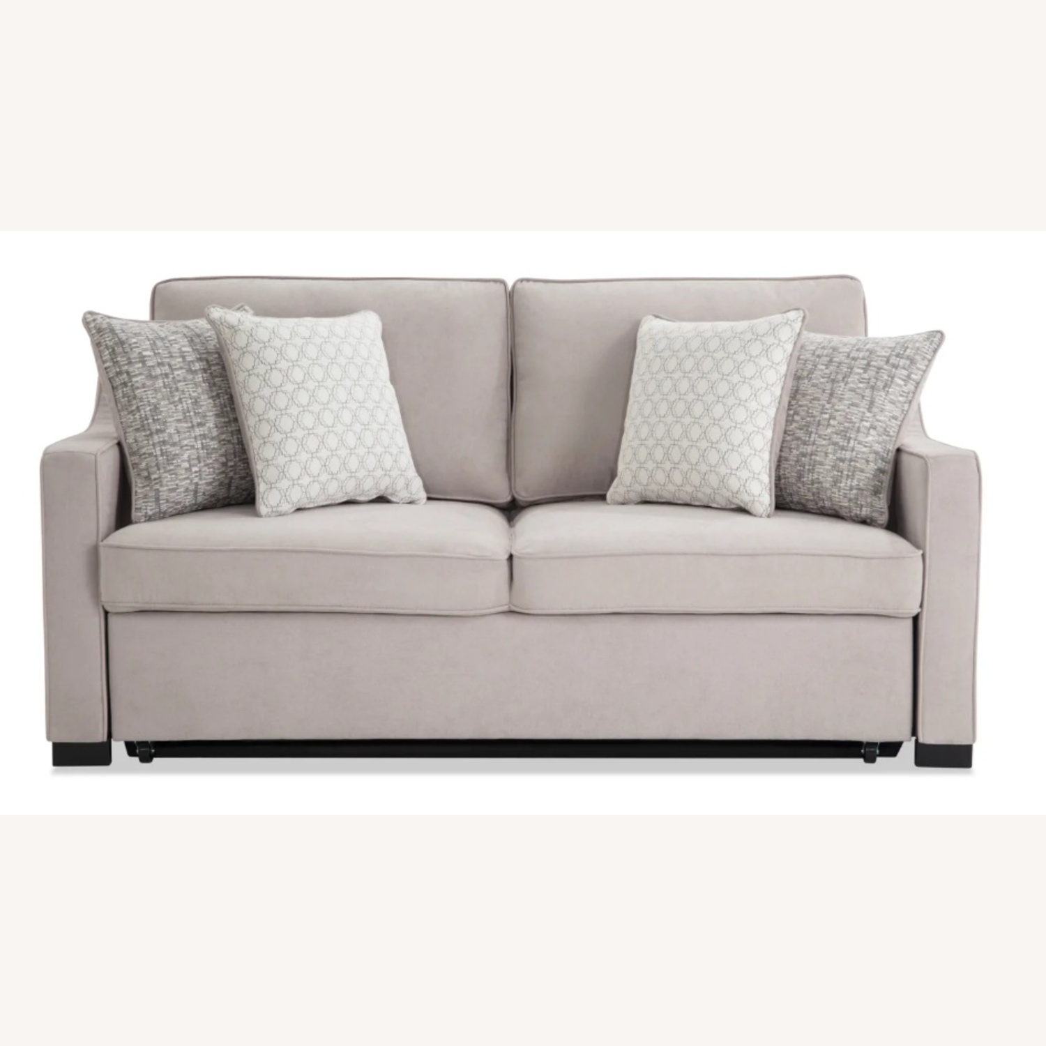 My Bob-O-Pedic Sleeper Sofa is classic and versatile for your home, with included accent pillows, a traditional slope arm, and a layer of my Bob-O-Pedic Memory Foam in each cushion! You’d never know about the pop-up retractable sleeper inside—just pull out and delight your overnight guests!