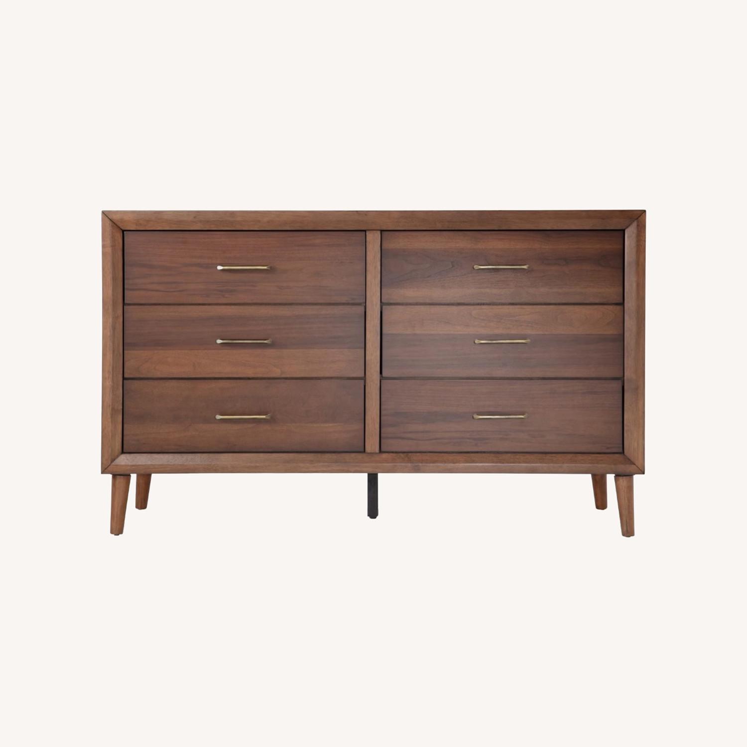 Seller's Notes:Give your bedroom a mini mid-century modern makeover! My Bettie dresser flaunts walnut veneers, tapered legs and retro brass hardware—just add some funky wall art to complete the look!
