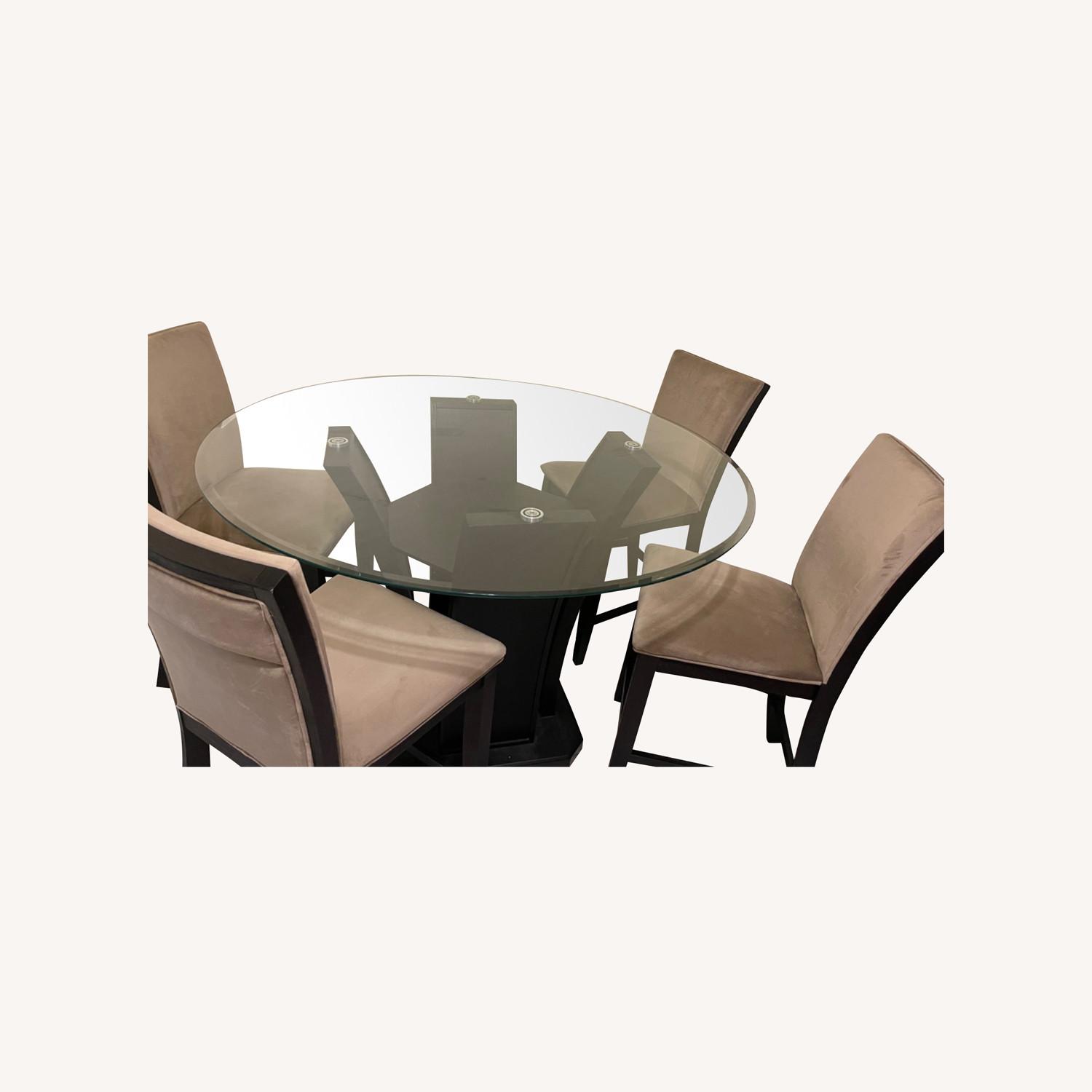 Seller's Notes:Glass top, wood base round dining set. In great condition, already assembled and ready for pick up.
