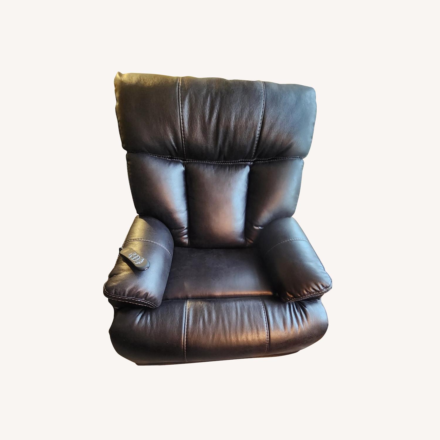 Seller's Notes:Purchased when bought condo a couple years ago, sat in the living room almost never used. Sat in maybe 10-15 times total! Not a blemish in sight, other than having Used a black marker to black out the ugly Bob's logo on the detachable control wand, as seen in photo. Chair works great! Remodeled the space and looking to replace the furniture. This is an excellent value and opportunity if you are in the market for a big, super comfy power recliner that lays flat with headrest and lumbar controls!