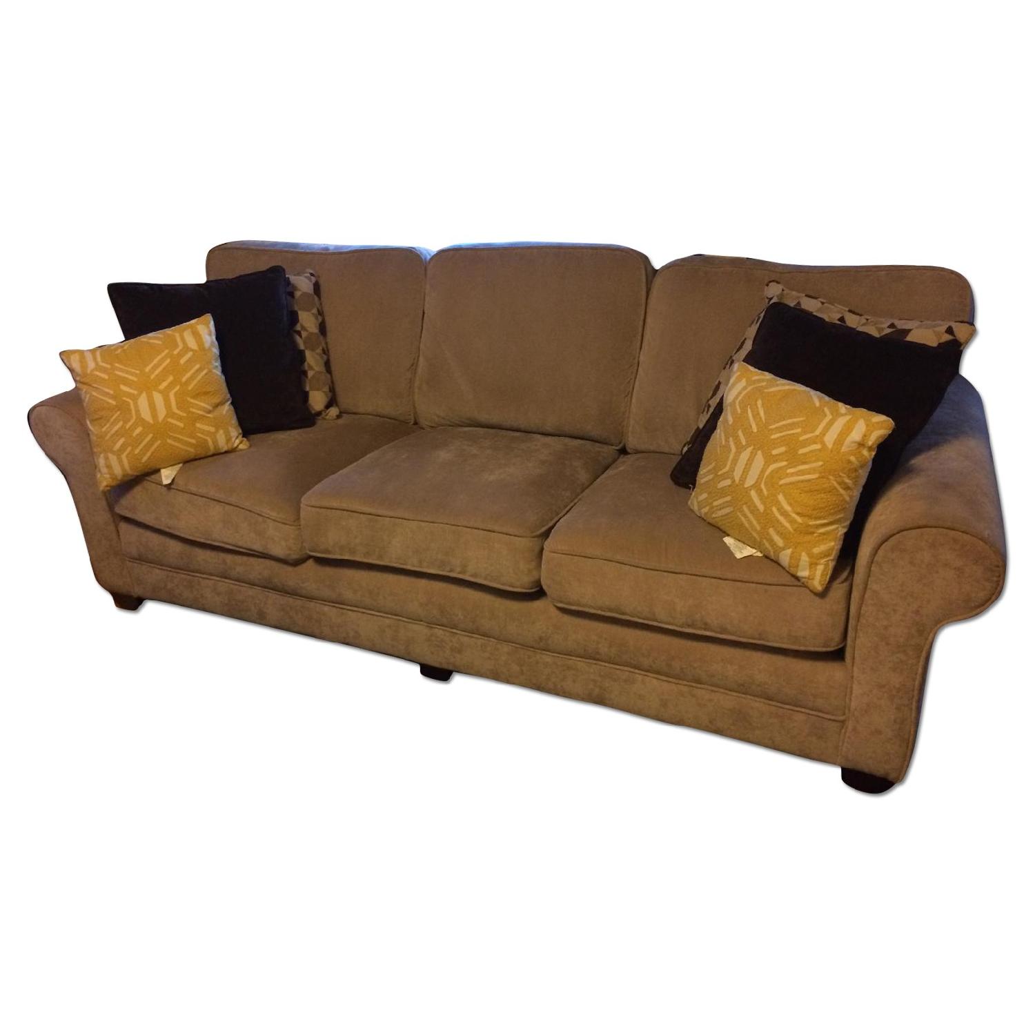 Seller's Notes:Bpb's Furniture sofa, 92" Length. Comes with throw pillows. Almost 4 years old but well cared for. Sofa has been exposed to one cat, who is hairless, and non-allergenic for most people.