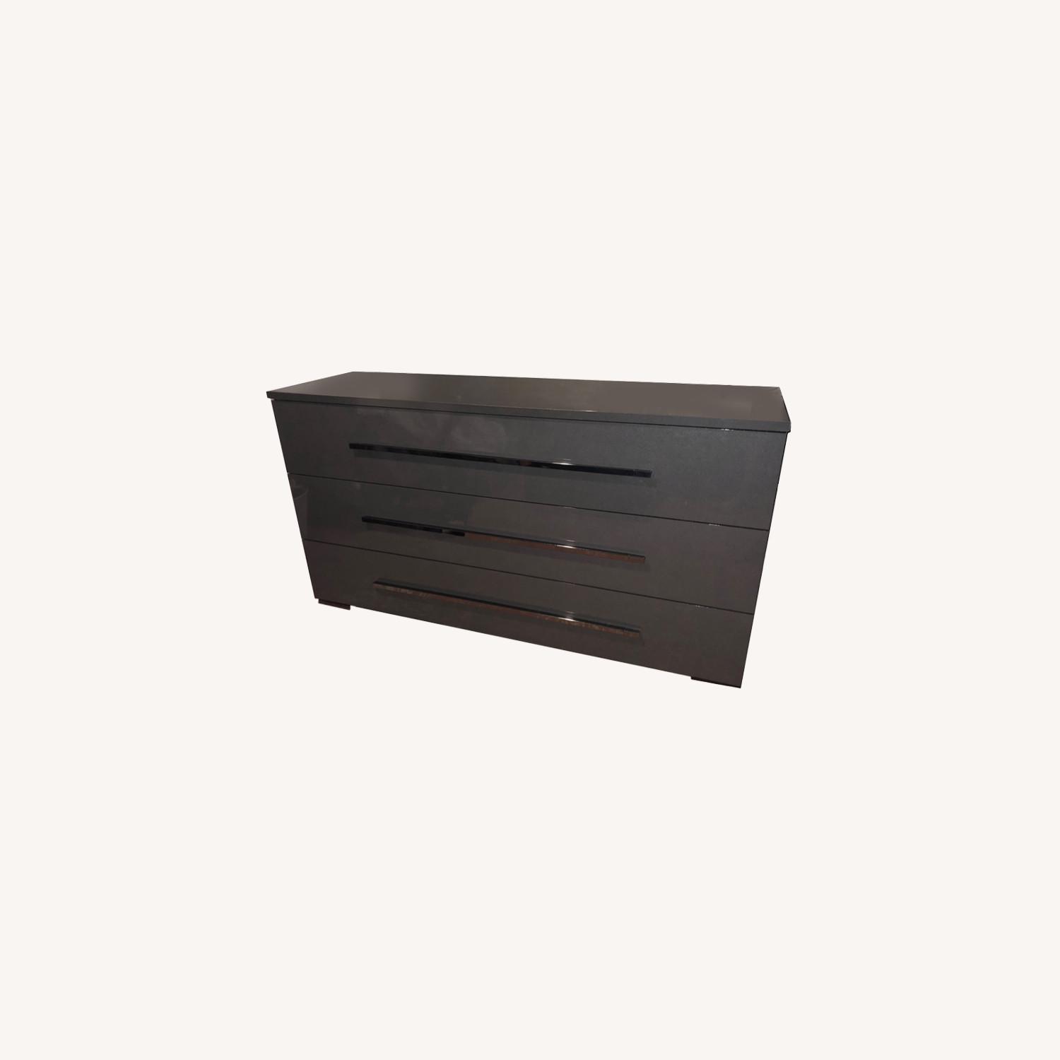 Seller's Notes:I bought this sleek and modern dresser from Bob's 2 years ago. It looks like it has 3 drawers, but each drawer is separated into 2 sections on the inside - making it 6 sections total. The drawers are a great size and hold a lot. The dresser has a reflective lacquer material that makes it super easy to clean (pictures do not do it justice because of the reflections and the fact that it's sitting underneath a mirror in my home). Looks almost new. Unfortunately this dresser does not fit in my new apartment. Please don't hesitate to reach out if you have any questions! Height - 33 1/2, Width - 63 1/2, Depth 18 1/2