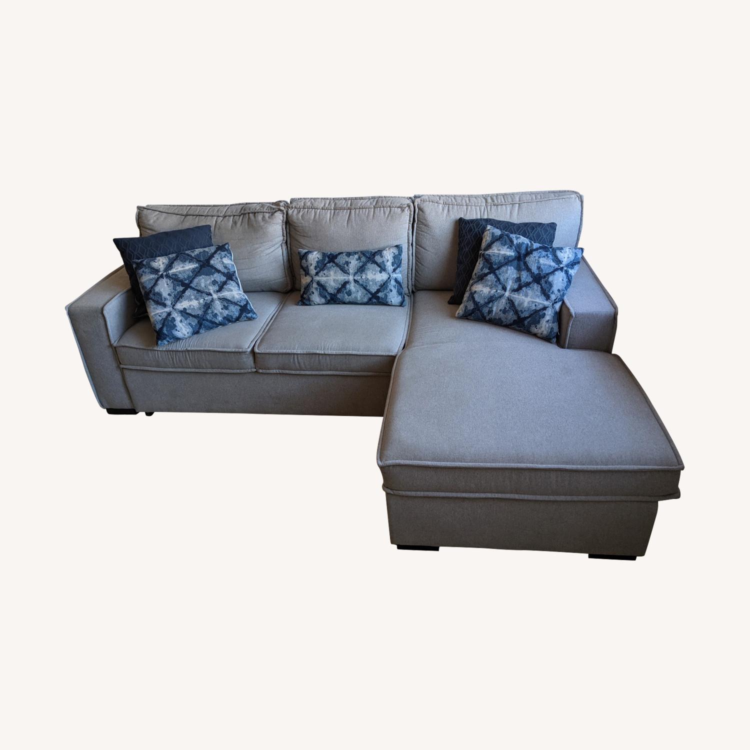 Seller's Notes:This sectional from Bob's discount furniture offers storage space within the chaise lounge as well as sleeping space with a pull out component. Purchased a few years ago this is from an apartment with no pets and non-smoking.