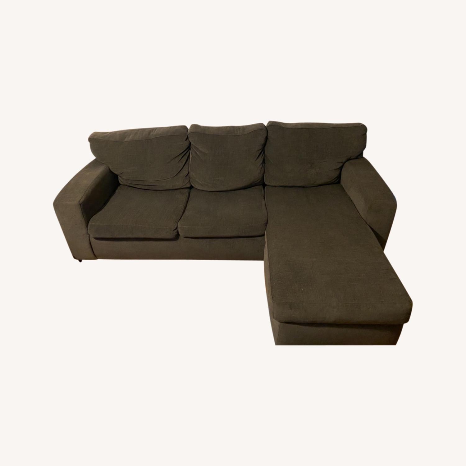 Seller's Notes:Ordered this sofa off AptDeco several years ago and now we’re ordering something firmer. The sofa is a three-seat sectional, with a queen-size pull-out bed. The depth of the main part of the couch is 37 inches; the depth of the sectional portion is 63 inches. The sofa is in decent shape, having been used for the last 5 years. There also is a matching armchair. Listed separately.