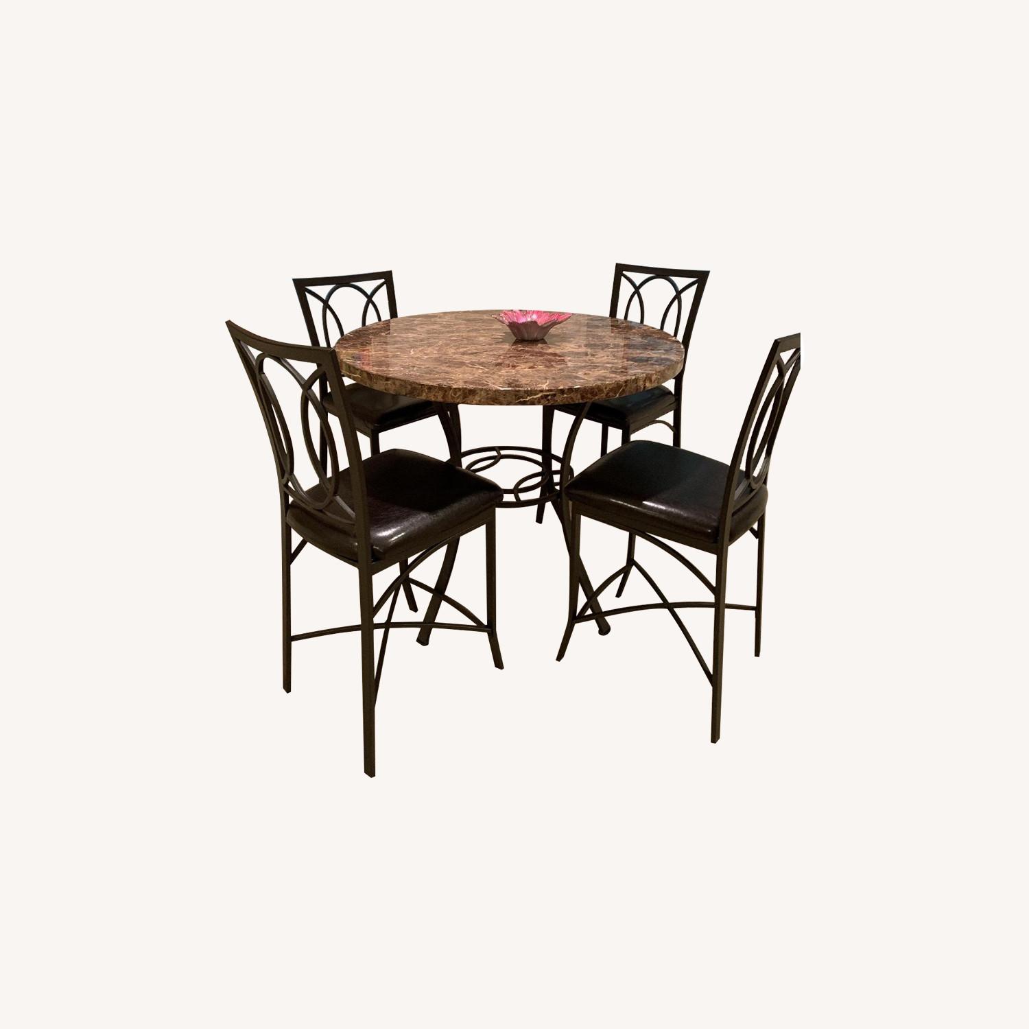 Bob's Stone Top Table w/ 4 Leather Upholstered Chairs
