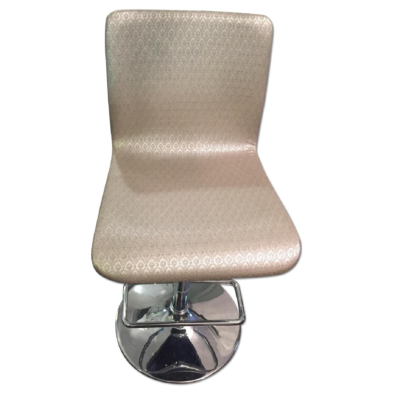 Seller's Notes:This is a beautiful designer bar stool that was custom upholstered in a silver fabric that is easy to wipe down.