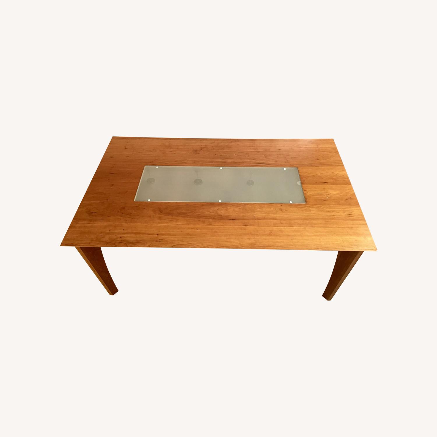 Seller's Notes:Roswood dining Room Table for 6 seats by BoConcept. 63"Lx35.5"Wx29"H with drop-in matte glass center, 39"Lx 11.5"W. We loved the table which has a beautiful glass center reflects light from outside. It has some scratches but works well as a table. We need more space in our living room so we are replacing our dining table. Please ask me any questions you may have.