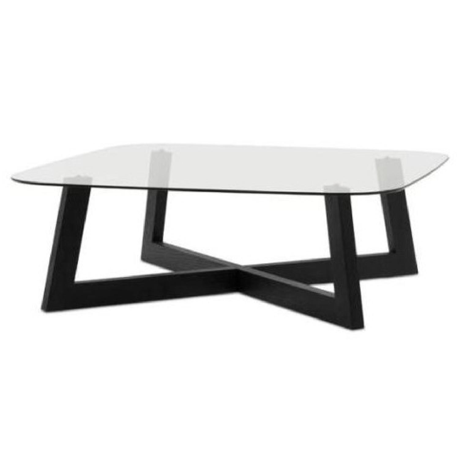 Seller's Notes:Lyon coffee table, clear glass/ black-stained oak veneer