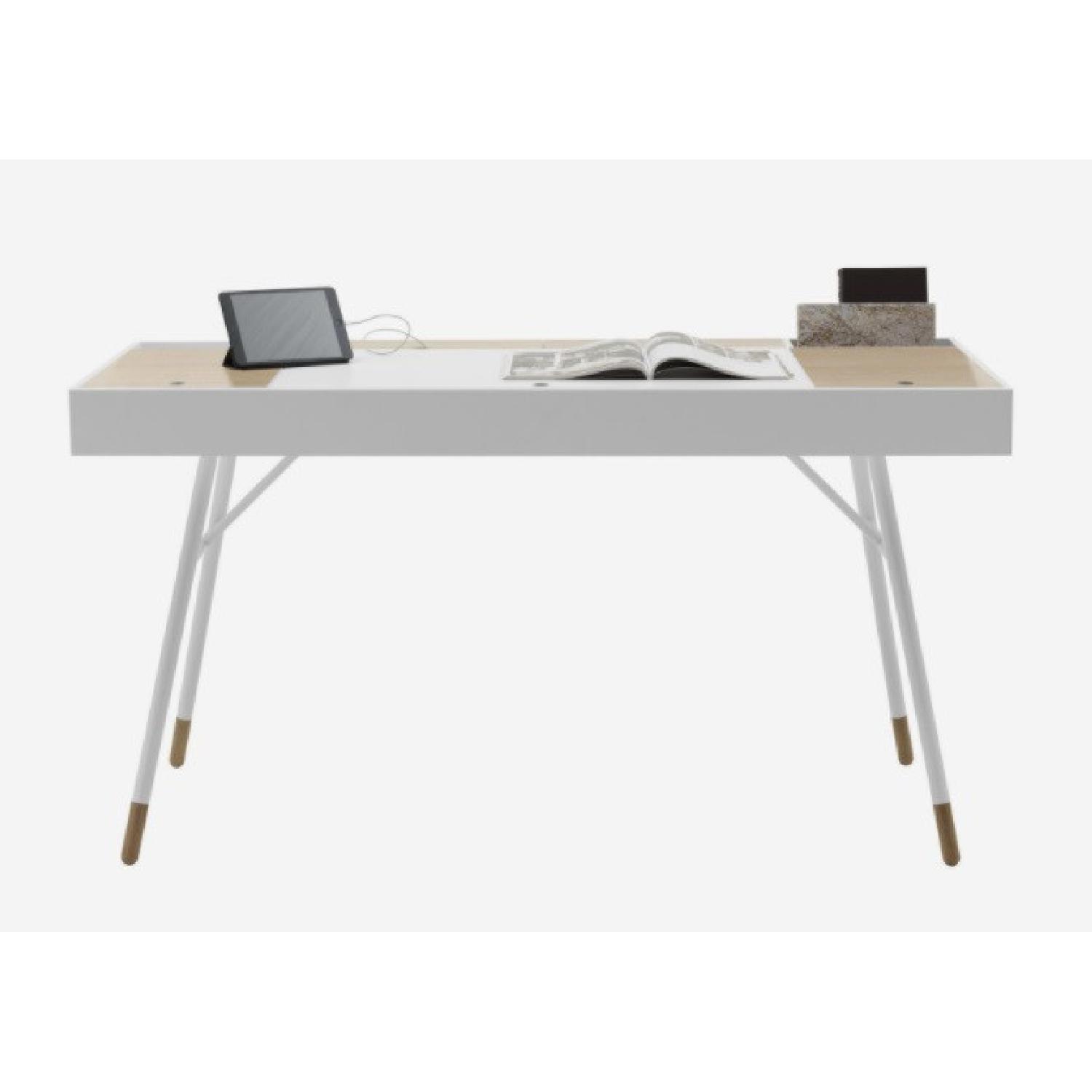 Seller's Notes:This is a great and barely used desk! I love it and have only had it for a year. I am selling it because I am moving and there is no room for it in the new place. The color is a brighter white than what is shown in the pictures (my lighting isn't great) Here is the description from BoConcepts website (where I bought it a year ago): "Cupertino - everything you need in a home office, hidden away in an instant. The Cupertino desk innovatively combines workspace and storage in a perfect home office solution. Different compartments in the desk allow you to keep your work area clutter free and the clean lines and slim proportions provide a minimalist touch to your work area."