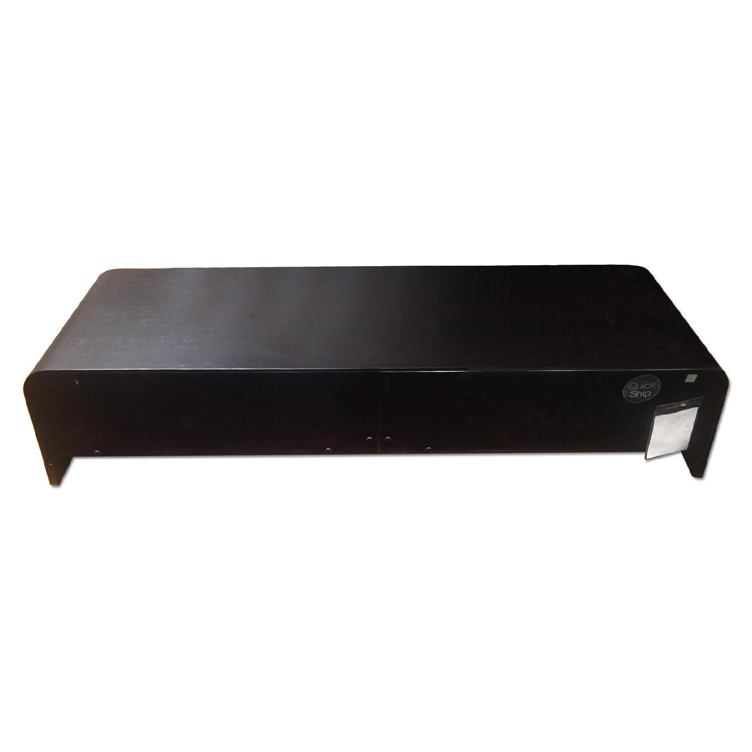 Seller's Notes:Floor model, great conditions! Black-stained oak veneer/smoke-colored glass