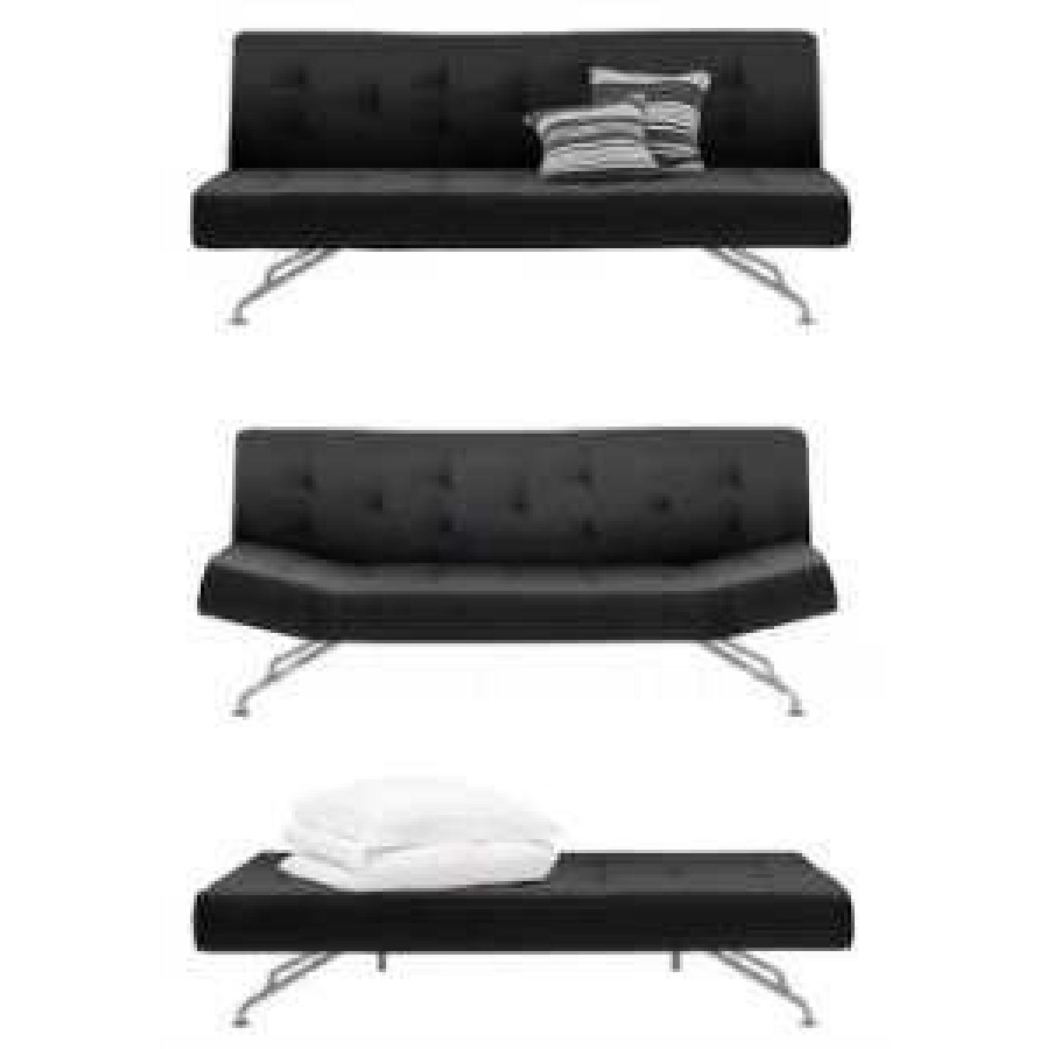 Seller's Notes:Fabulous Boconcept Futon. Has dual adjustable arm rests. Has hidden legs in two zippered compartments in the rear that open up to a full size bed measuring 77 x 49. Features easy to clean dark brown fabric, sturdy brushed stainless legs and a soft Scandinavian memory foam that is great for sitting, lounging and sleeping on. A great multi functional piece for any New York apartment. Item was treated at the time of purchase with a Guardsman Furniture Protector spray. Over the years there are minor stains on the seat, some scratches on the metal legs and piling of the fabric. However its dark color, protective spraying and careful usuage in a smoke/pet free house makes it look almost brand new.