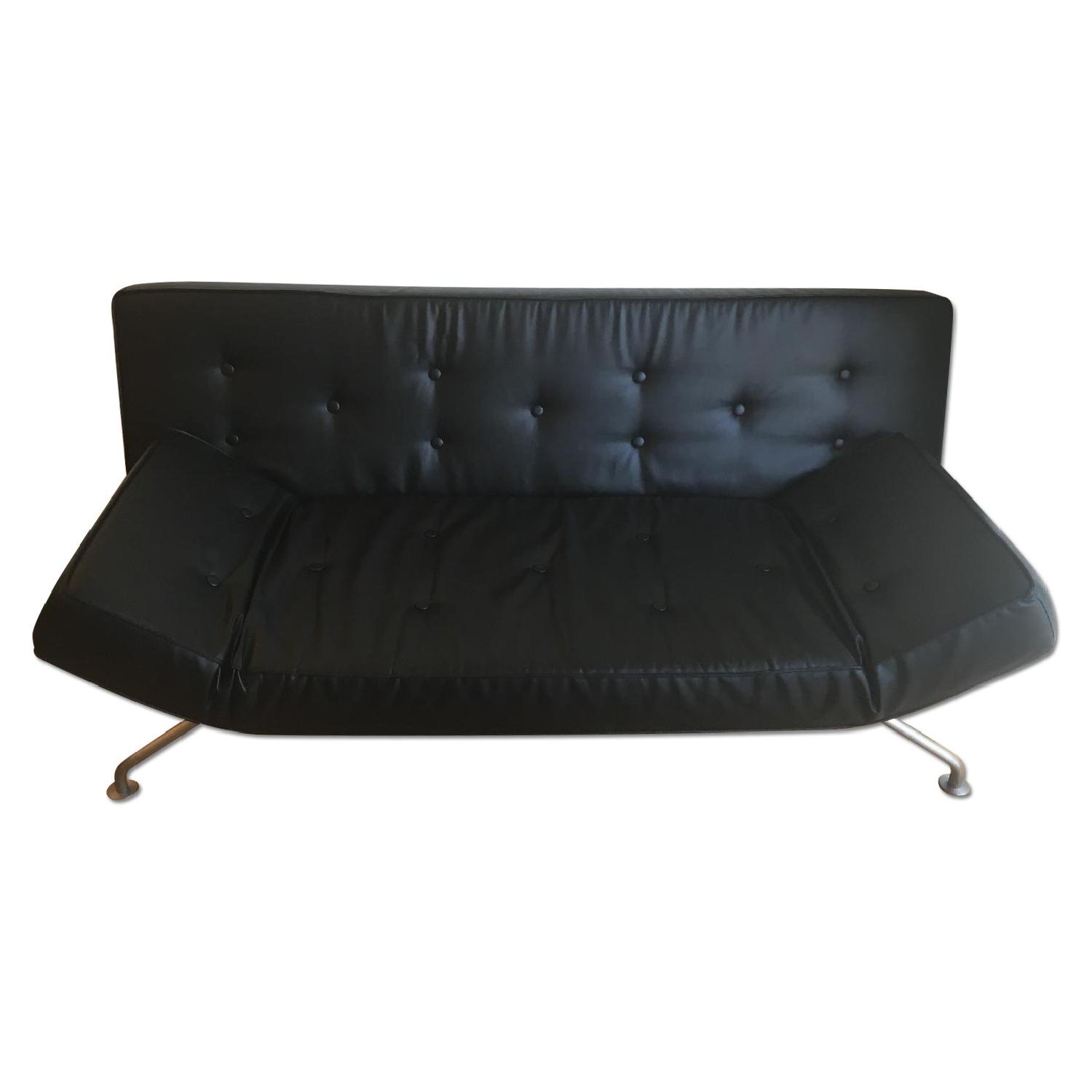 Seller's Notes:Sleek, comfortable, and functional BoConcept sofa that folds flat into a bed. I've owned it and loved it since December 2010, but my wife insists on a couch that isn't black, so it has to go. It's easy to clean – no need to worry about spilled red wine – and great for both sitting and sleeping. Both the arms and back are easy to adjust at two angles, depending on the position in which you want to recline. There are assorted small tears in the fabric and on the buttons. I will include three unused replacement buttons, if you want to swap them out. I also have the original receipt and other paperwork. Depth is 49.25" when folded flat. Additional legs fold out of zipper compartments in the back to provide support.